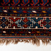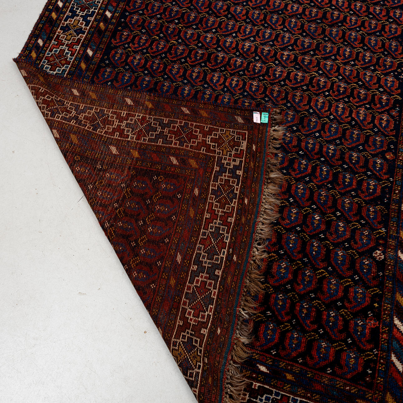 Dark blue base with polychrome boteh pattern. Border with stliistered starches, approx. 192x155 cm.
