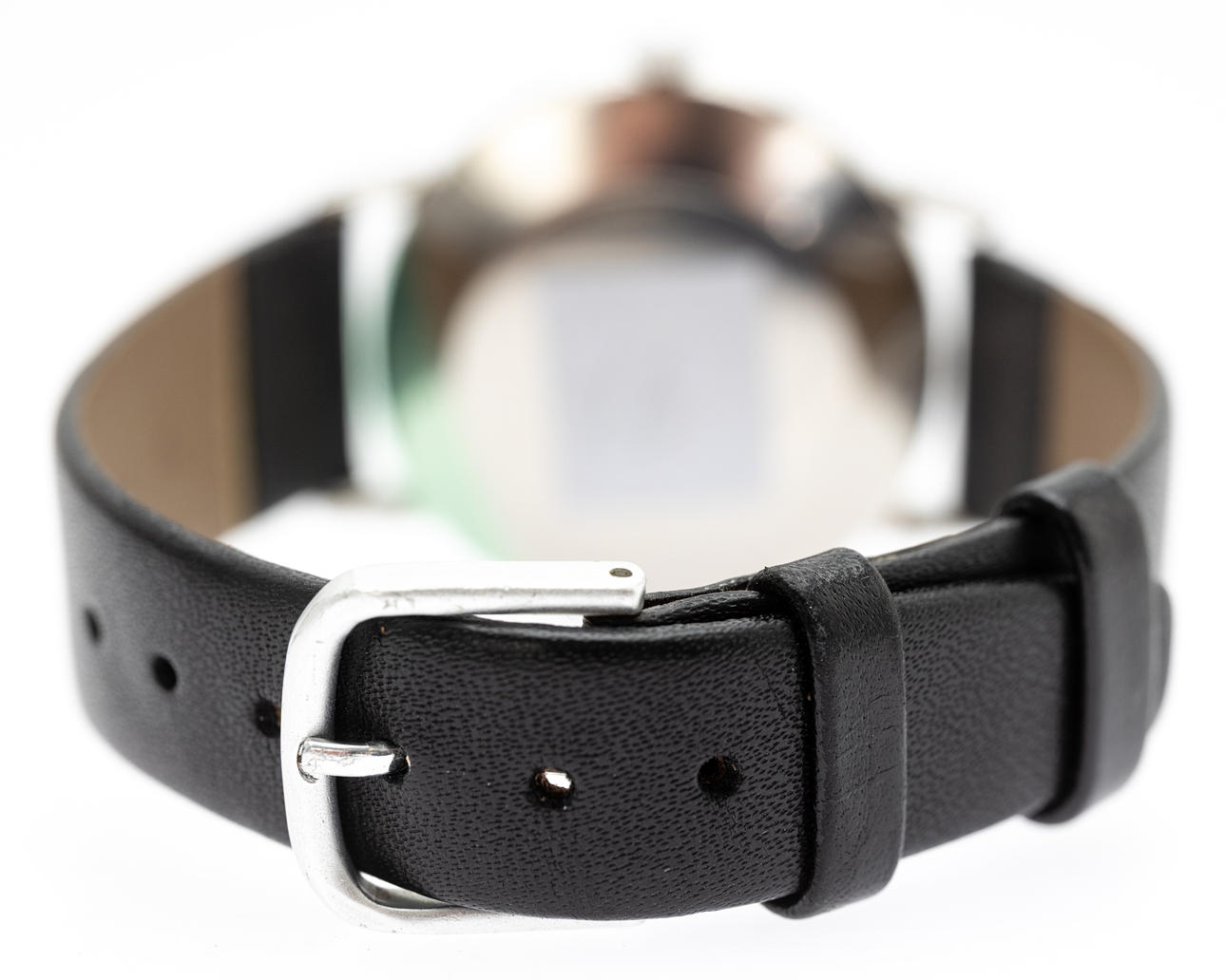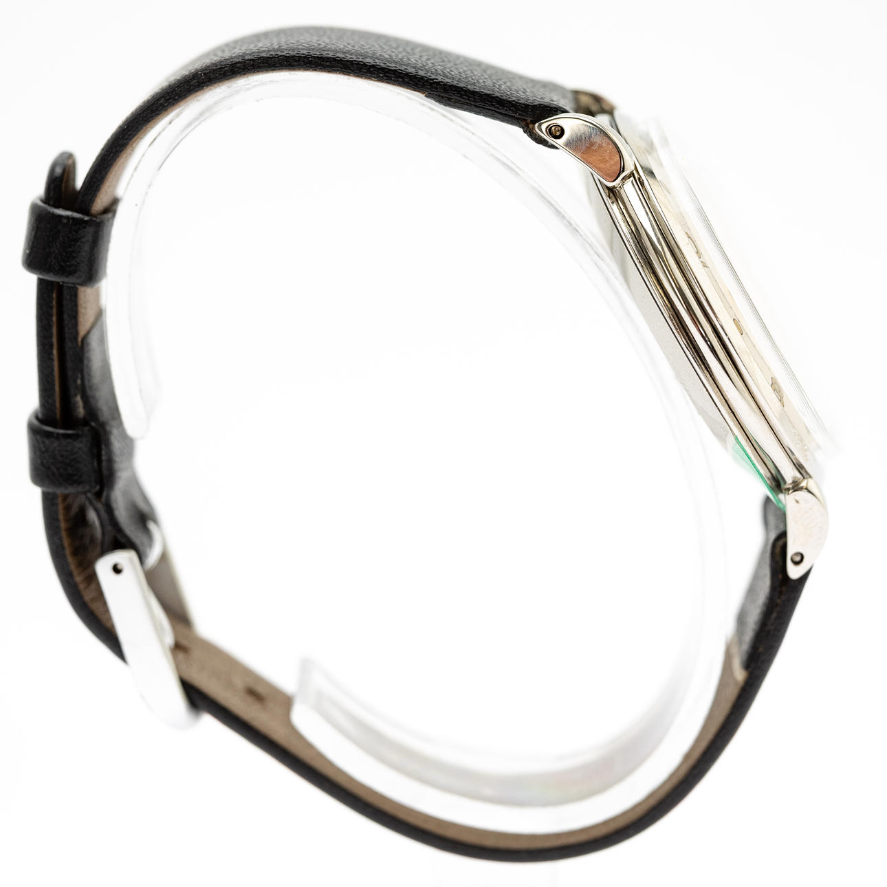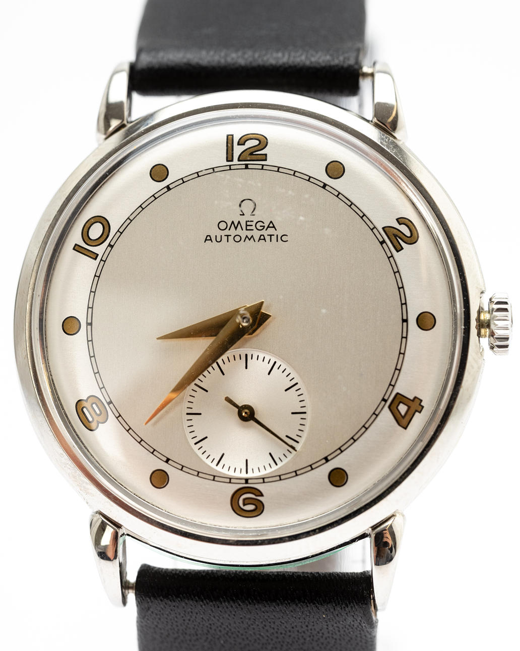 Omega wristwatch. ref. 2398-3. Stainless steel case, dial with minute and hour hands and small seconds. Hammer automatic movement. Dimensions approx. Case diameter 34.5 mm. Leather strap with pin buckle not from Omega. The clock was ticking at the time of the review, Stockholm's auction shop does not guarantee functionality.