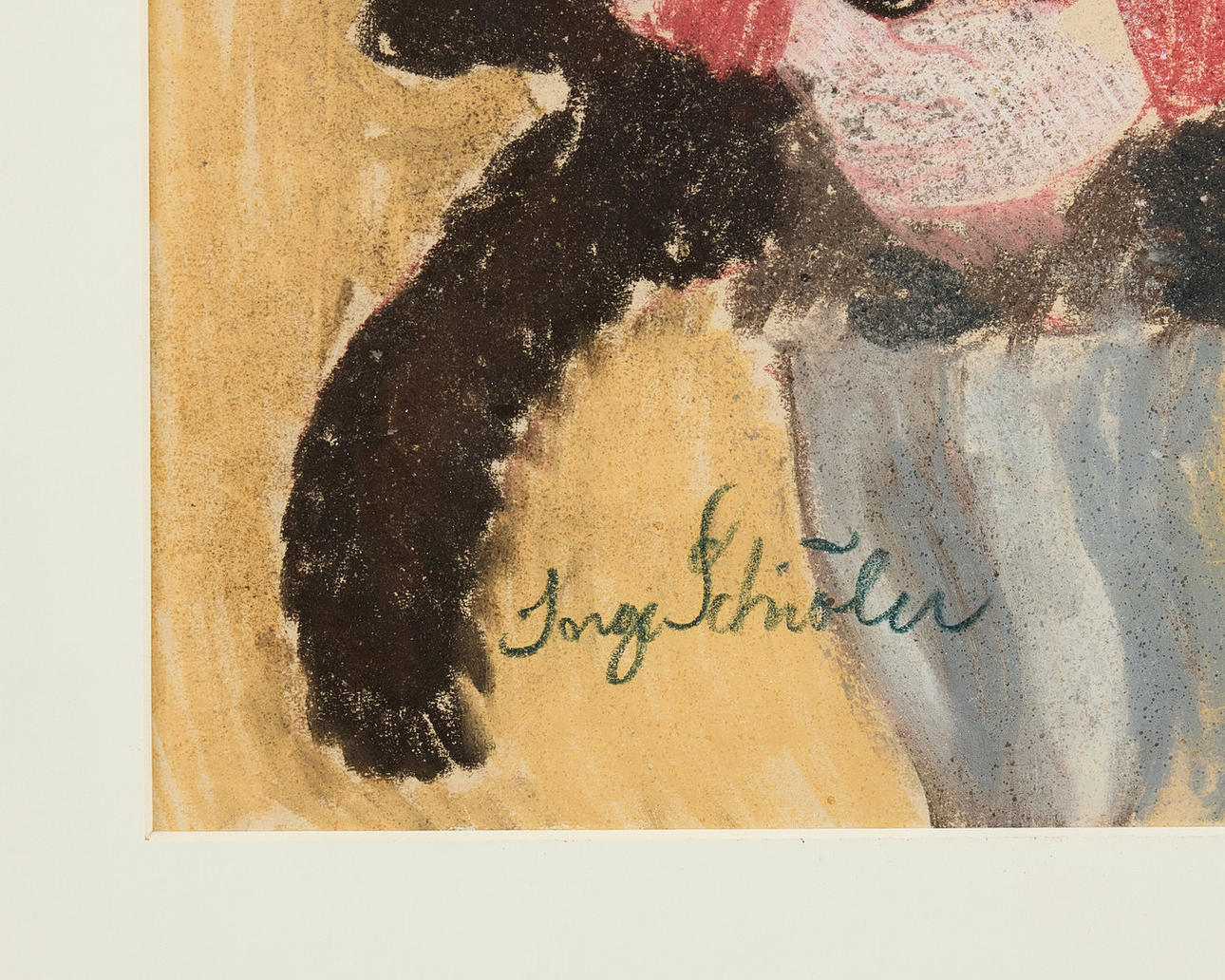 Pastel and watercolour on paper, picture dimensions 39 x 30 cm, including frame 65 x 54 cm. Signed Inge Schiöler.