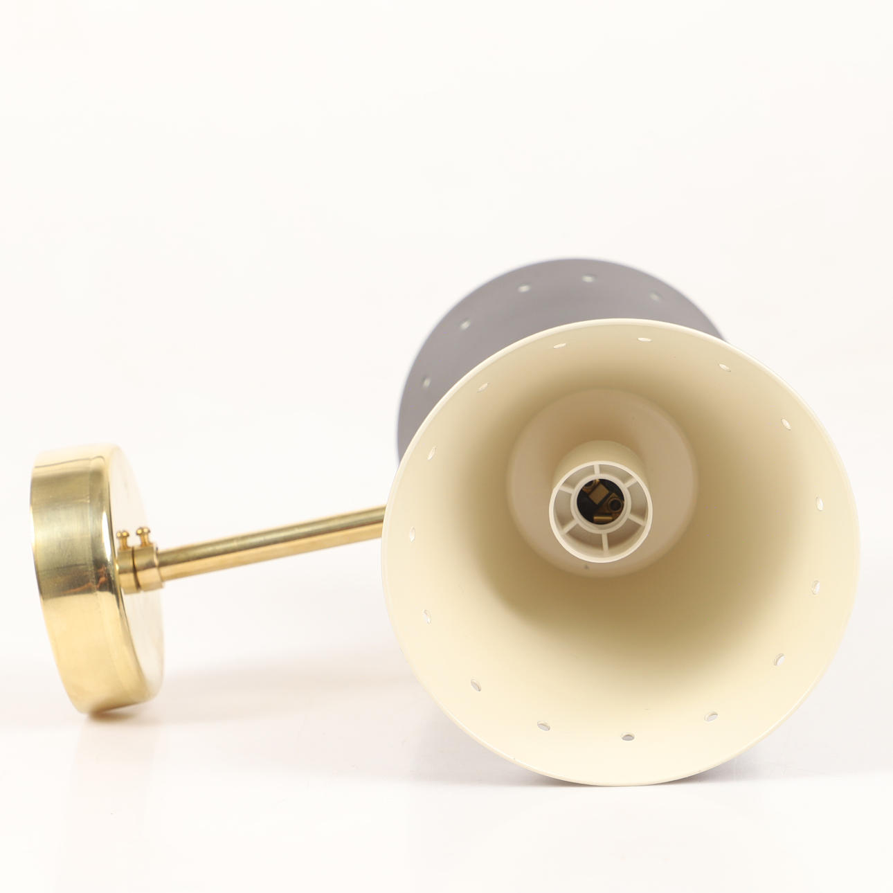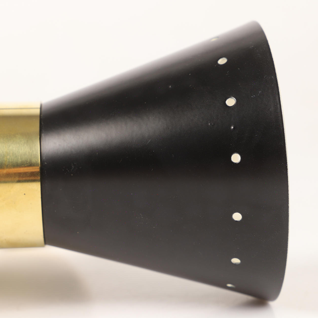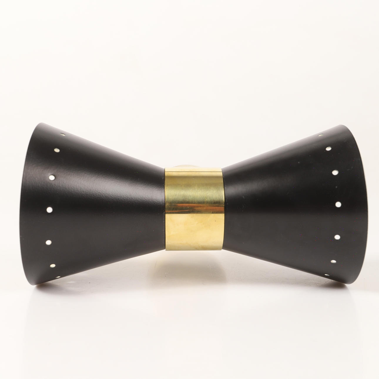Body of patinated brass, screens of lacquered and enamelled metal, 2 light points, E14