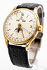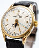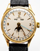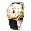 Men's bracelet watch from Omega model “Cosmic”, ref. DW 2606, gold-plated case, cream-colored dial with minutes, hour and second hand, date, day, month and moon phase, plastic glass, leather strap with pin buckle, manual wound cal. 381. Dimensions approx. Case diameter 35 mm. Leather strap with pin buckle Extracts from the Omega archive are also available for this watch. The clock was ticking at the time of the review, Stockholm's auction shop does not guarantee functionality.