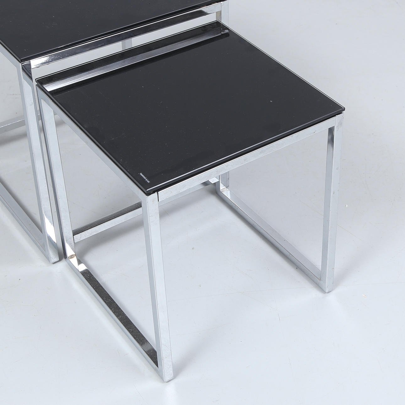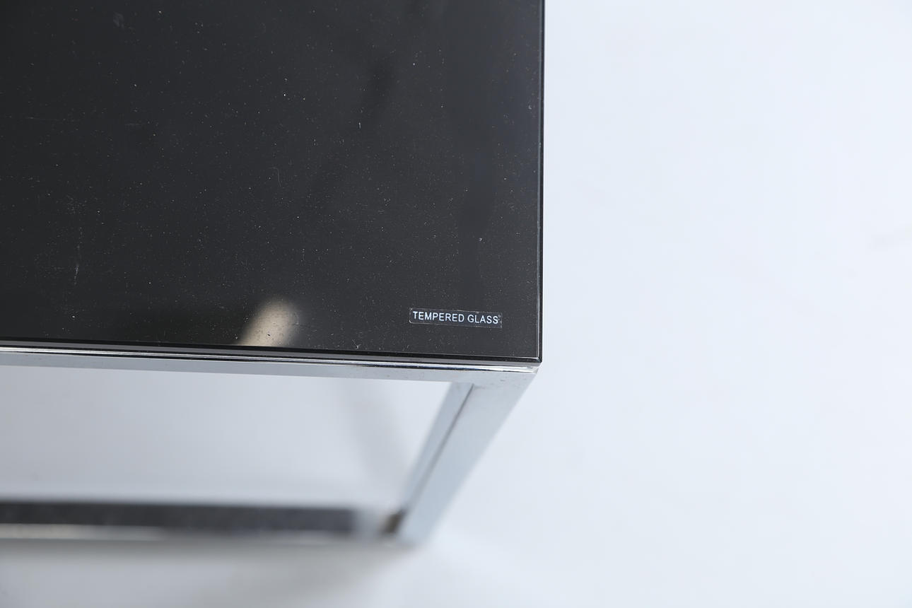 Dark glass plates. Undercarriage made of metal.