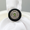 Onyx: natural; cabochon disc; 4.10 carats. Tourmaline: natural; oval cut; 0.15 carats. Diamonds: natural; several x round cut; 0.38 carats total