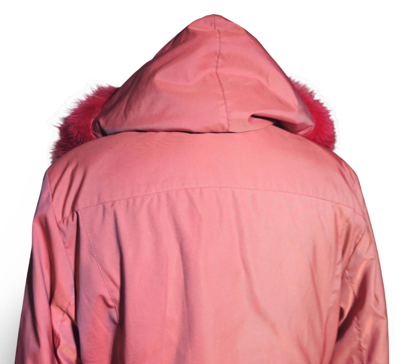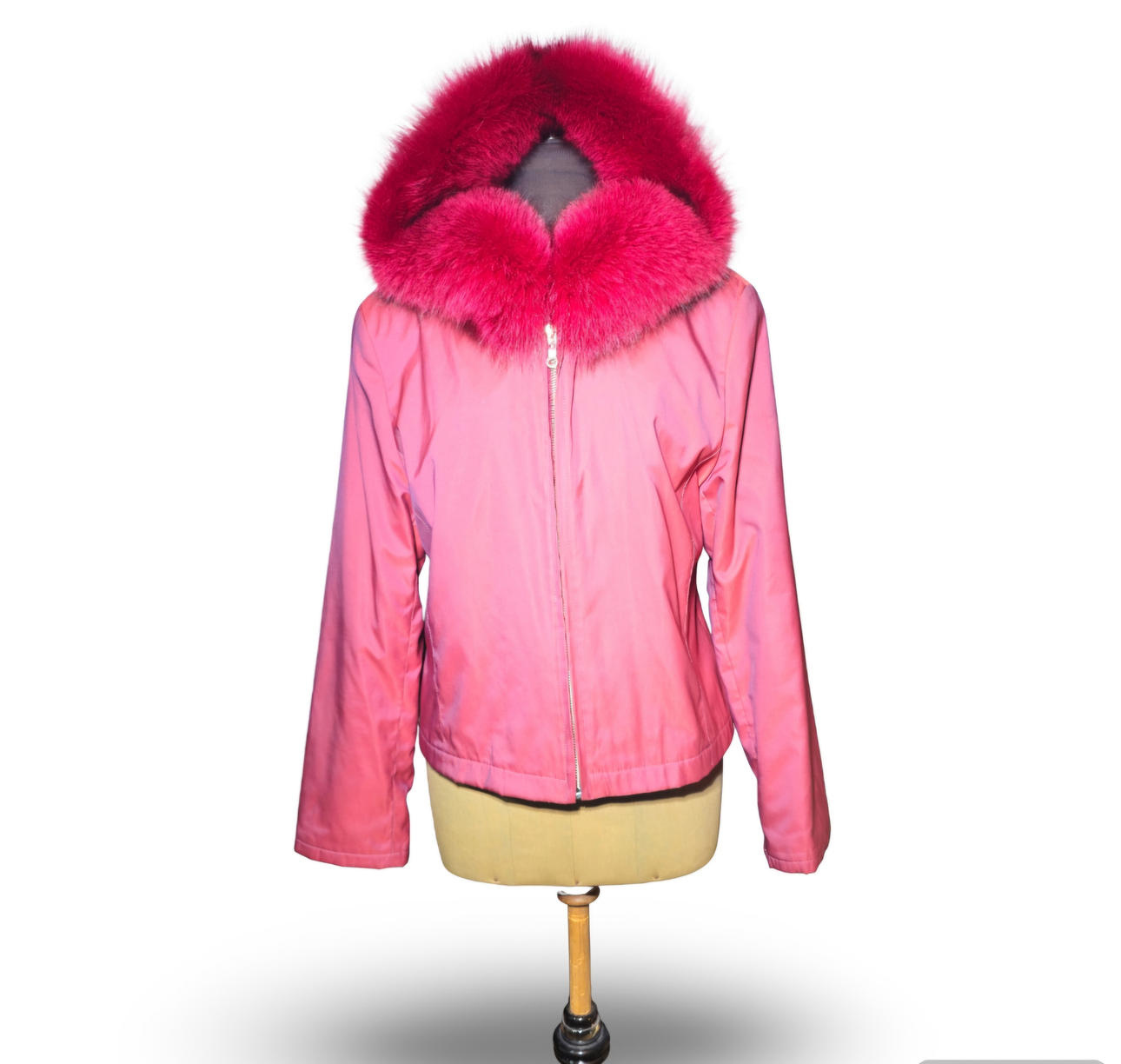 4964551. Wine-colored hooded jacket with matching renard. Size 40 approx.