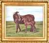 Horses in the yard. Signed. 46x55 cm. Overall dimensions 61x70 cm.