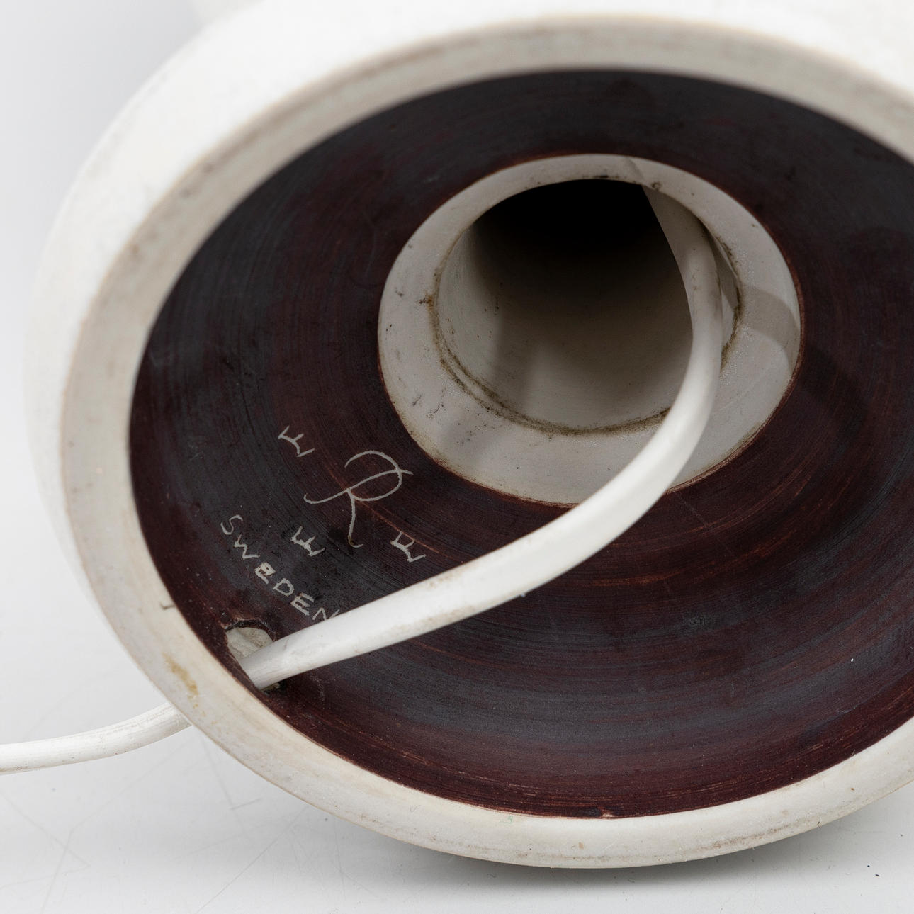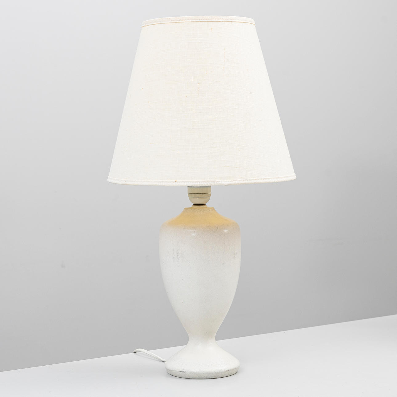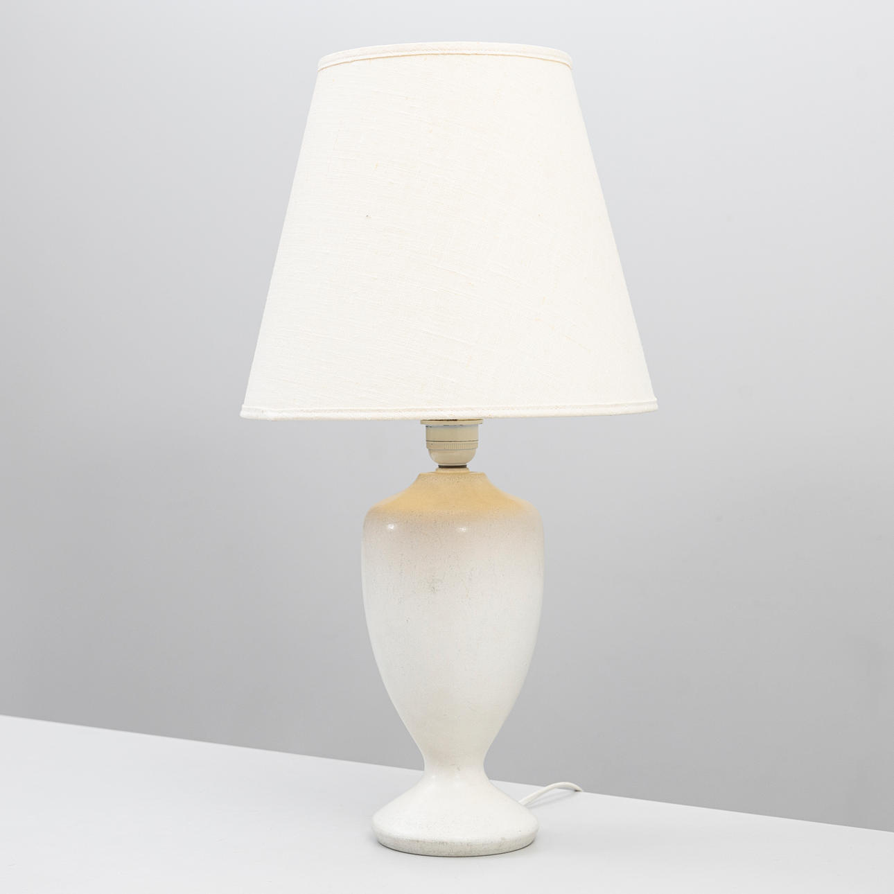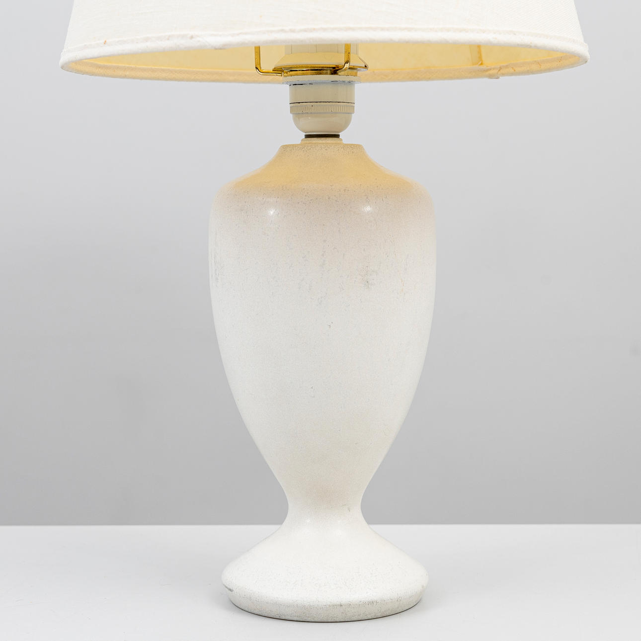 Eggshell glazed stoneware. Height incl. plinth approx. 33, with screen 57 cm.