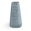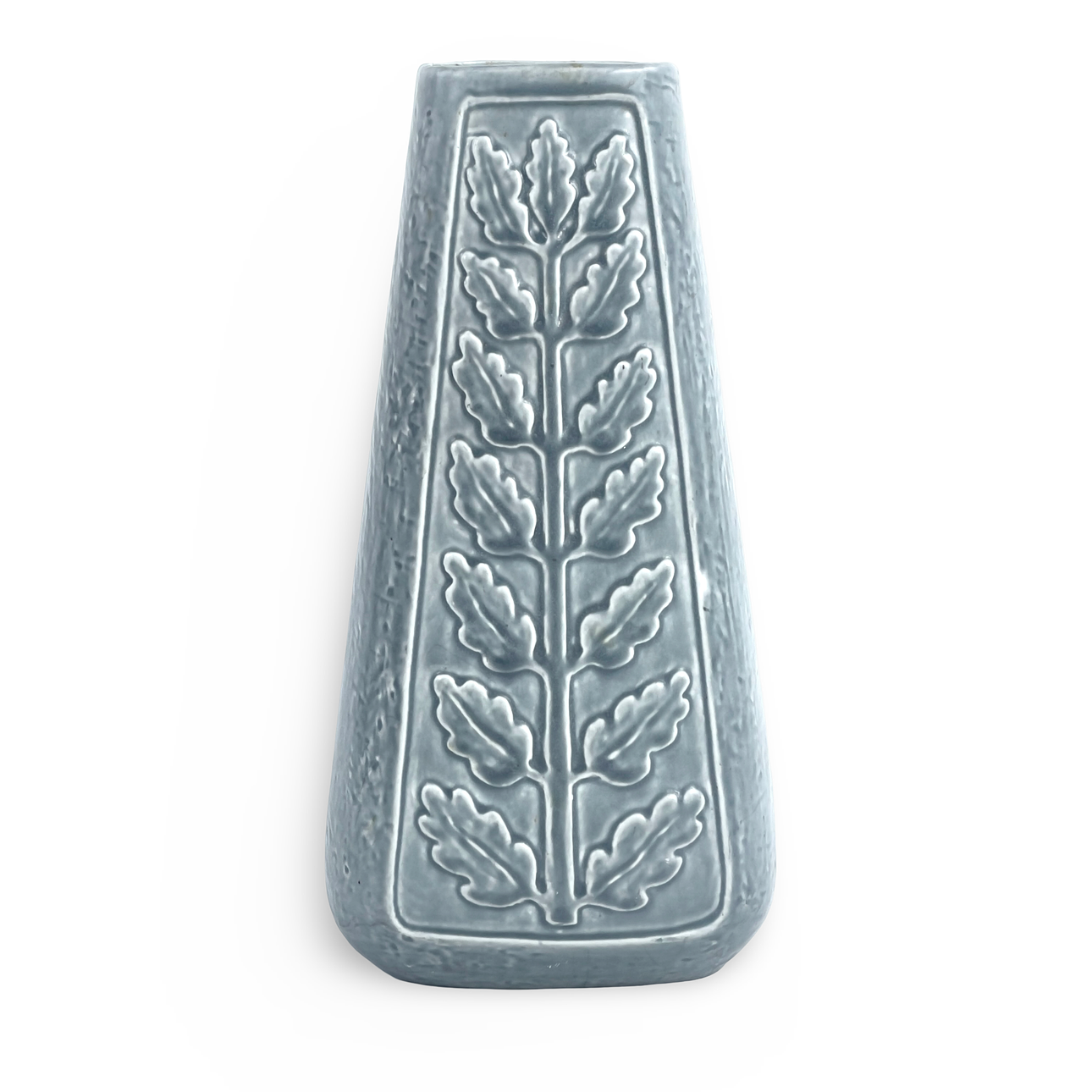 Vase in blue-glazed stoneware with relief decoration of oak leaves. Stamped underneath "Rörstrand Sweden".
