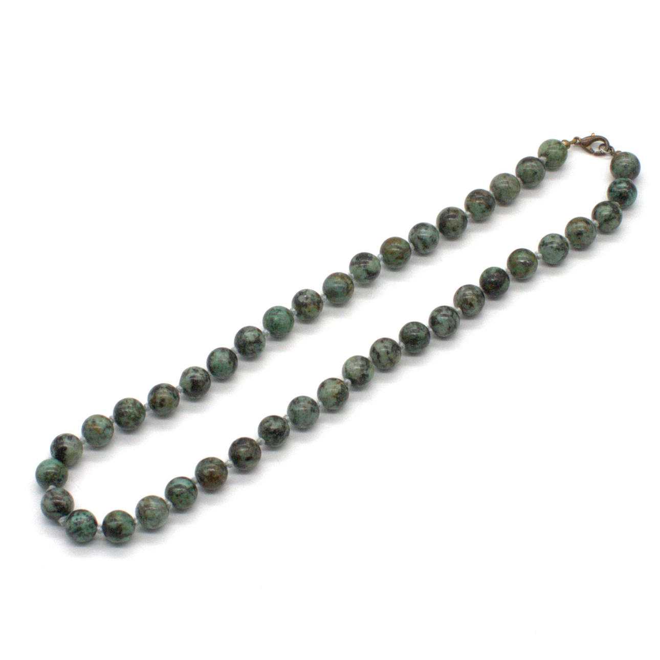 Classic nephrite ball necklace in boho chic style. Made by hand Pearls are individually linked and incorporated. With carabiner clasp/lobster claw