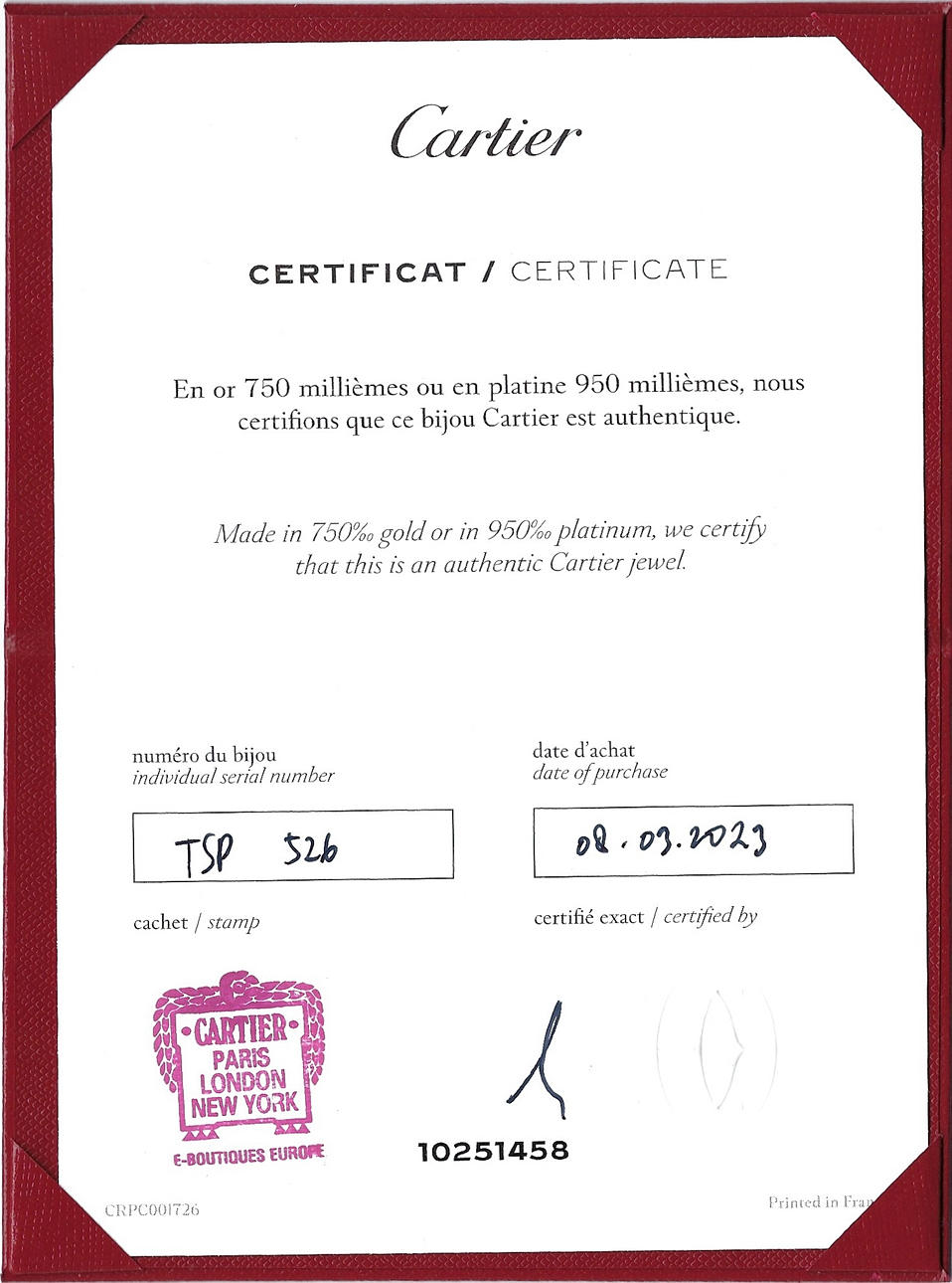 Certificate included.