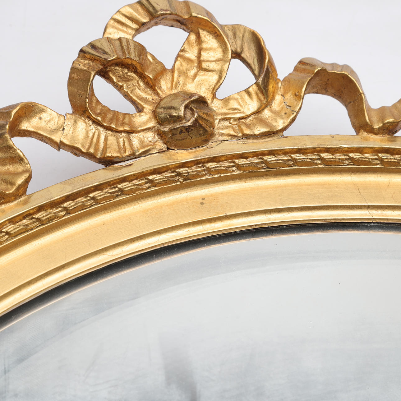 Gilded wood. Decor in the form of ribbon braid.