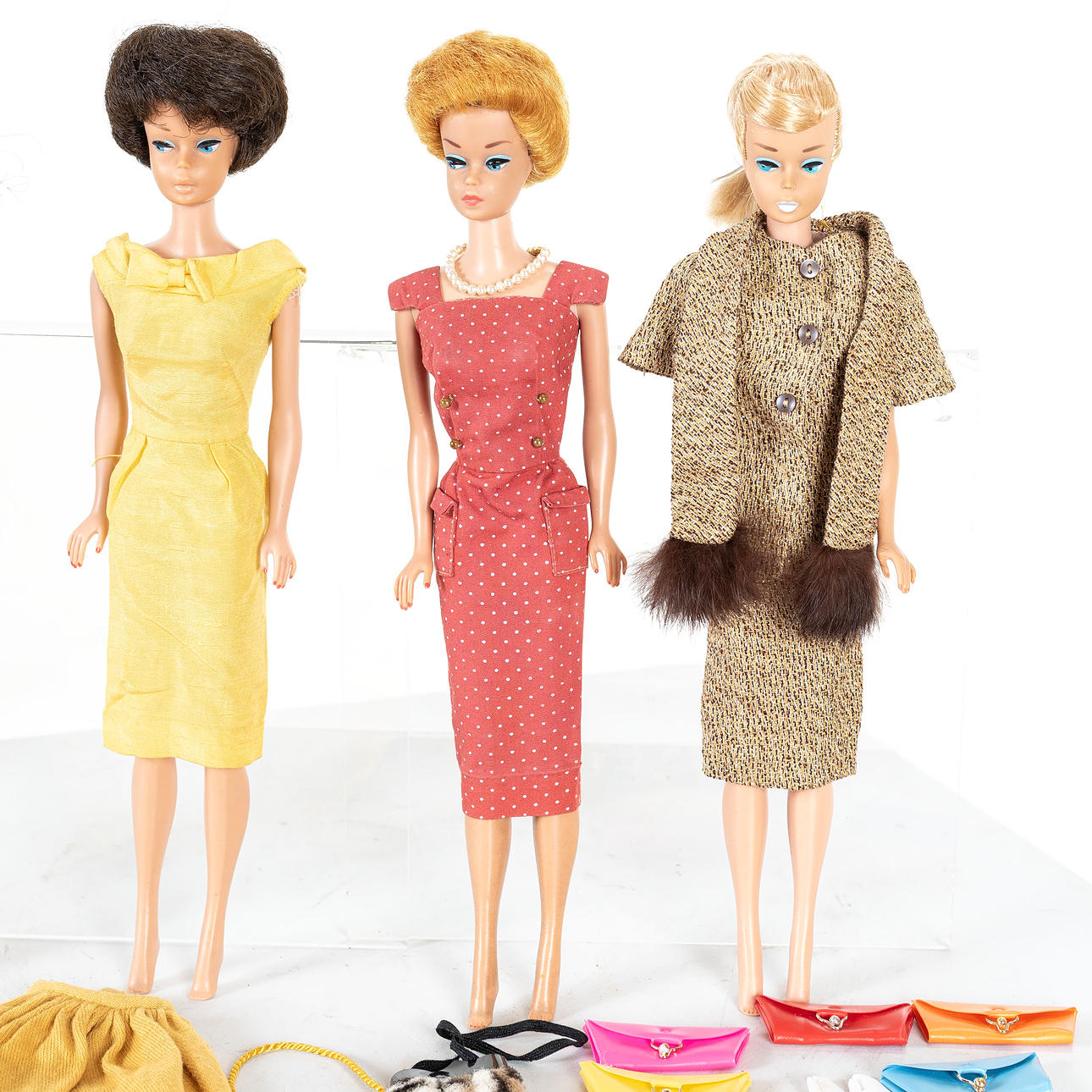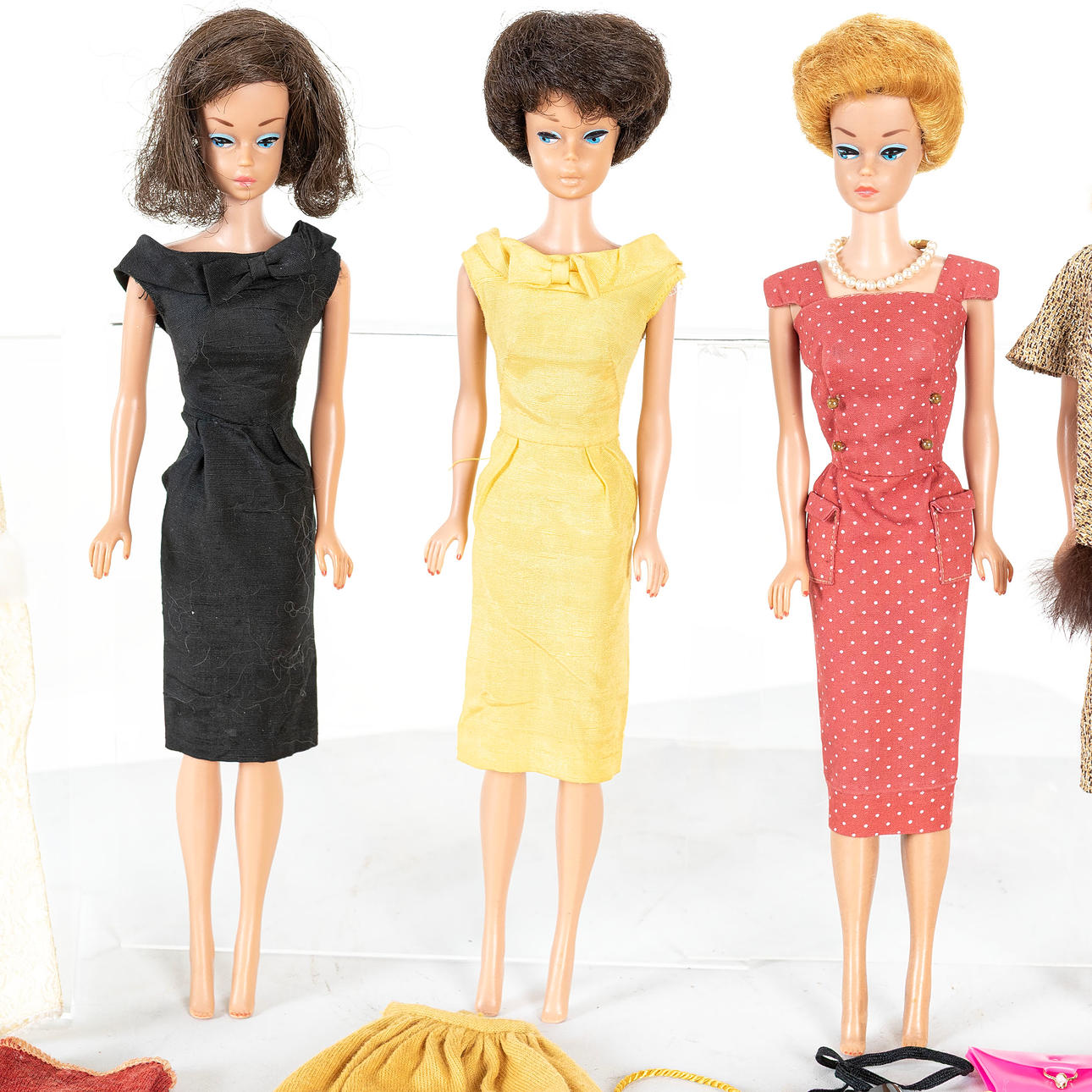 BARBIES, 4pcs with accessories, Mattel Inc, 1960s.