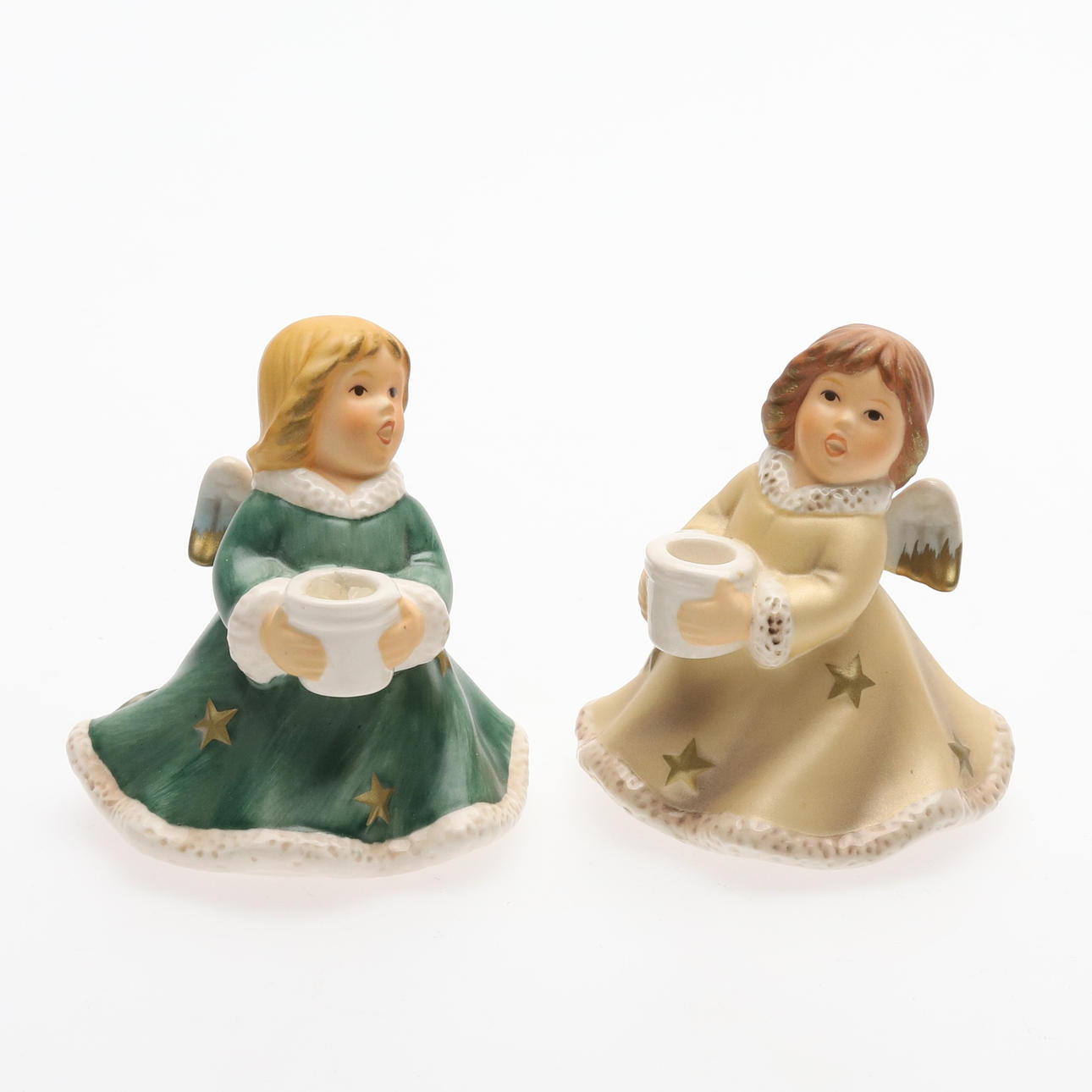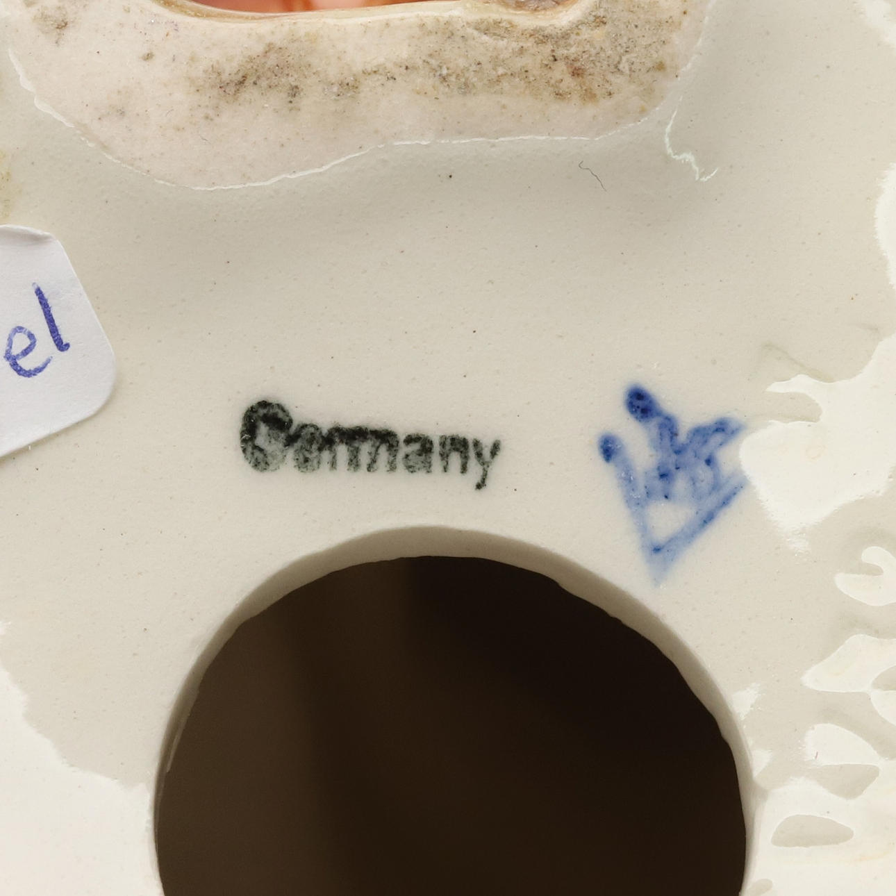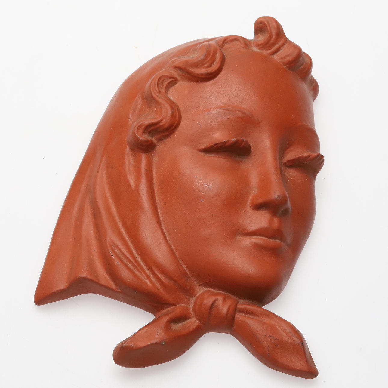 A bear, three Christmas/winter themed figurines and a wall relief of a woman. 7-11 cm height.