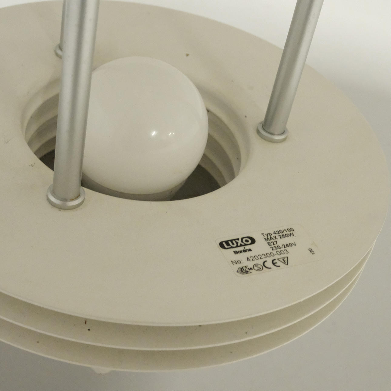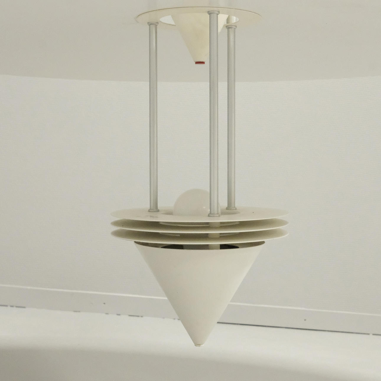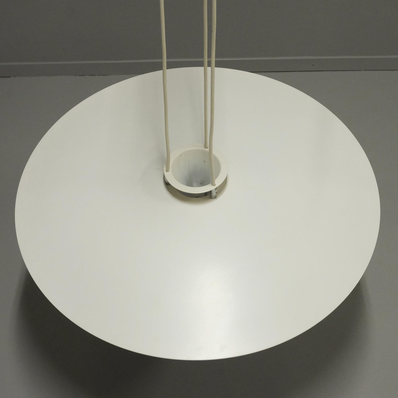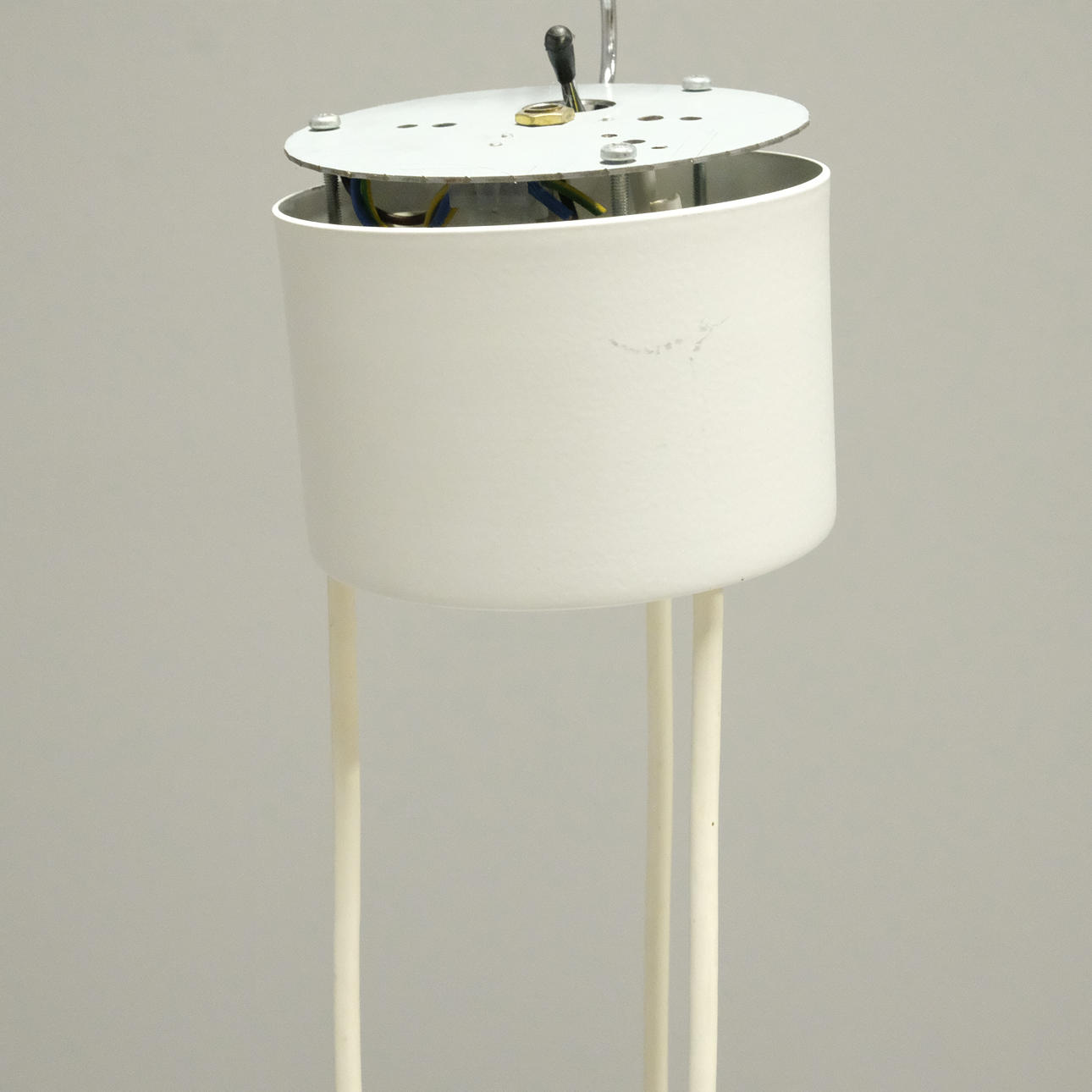 White lacquered metal, total length approx. 115 cm, height approx. 55 cm, diameter approx. 80 cm.