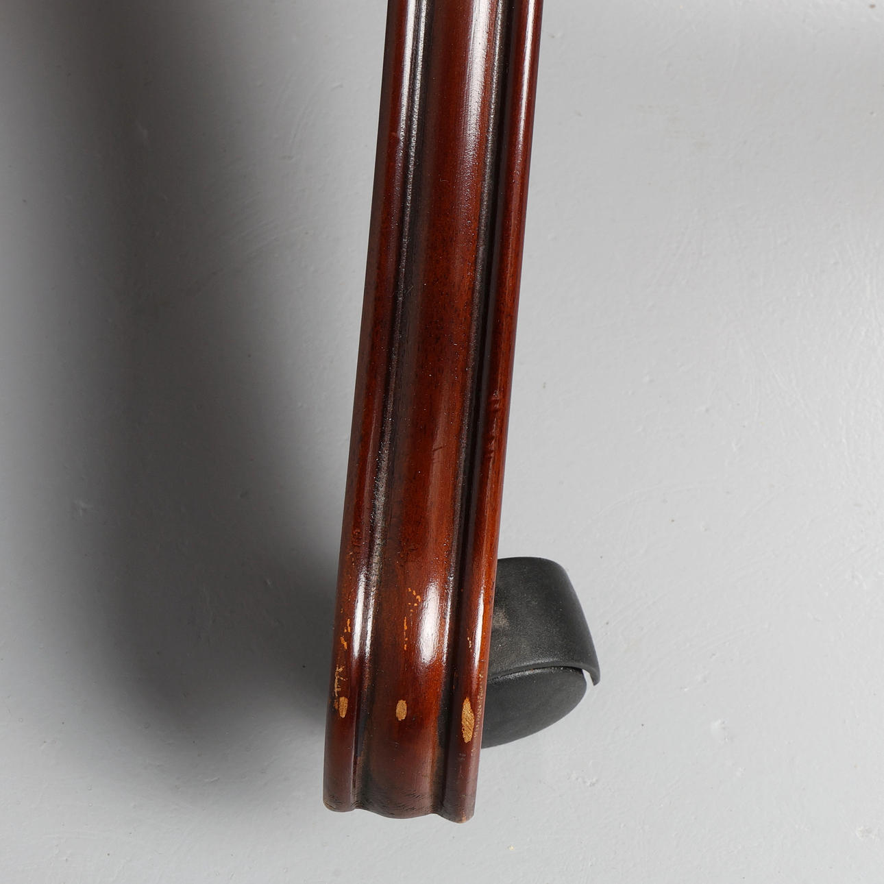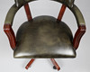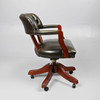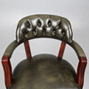 The buttoned back, arms and seat upholstered in green leatherette, with a stained wood frame, swivel base, and 5 legs on castors, H.82cm.