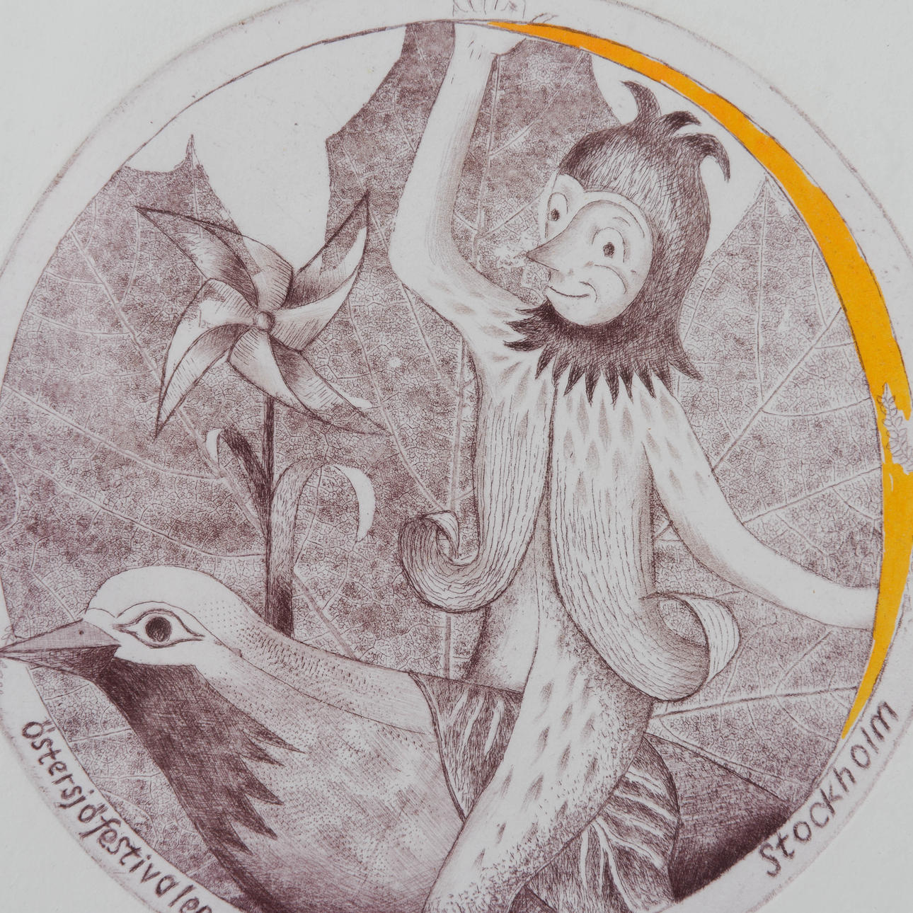 BERTIL MAURITZON. Toy motif, etching, signed and numbered 19/70.