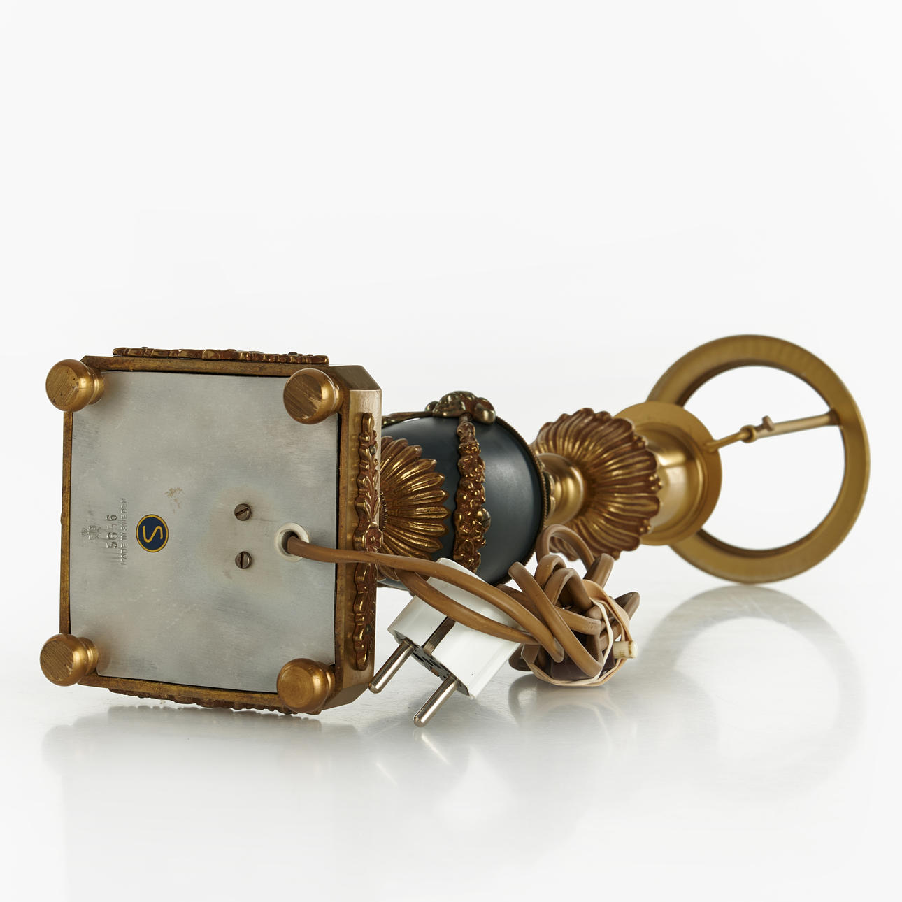 4966691. A table lamp, Einar Bäckström, Malmö, model 5656, brass and green lacquered sheet, decor of buck heads and garlands.