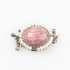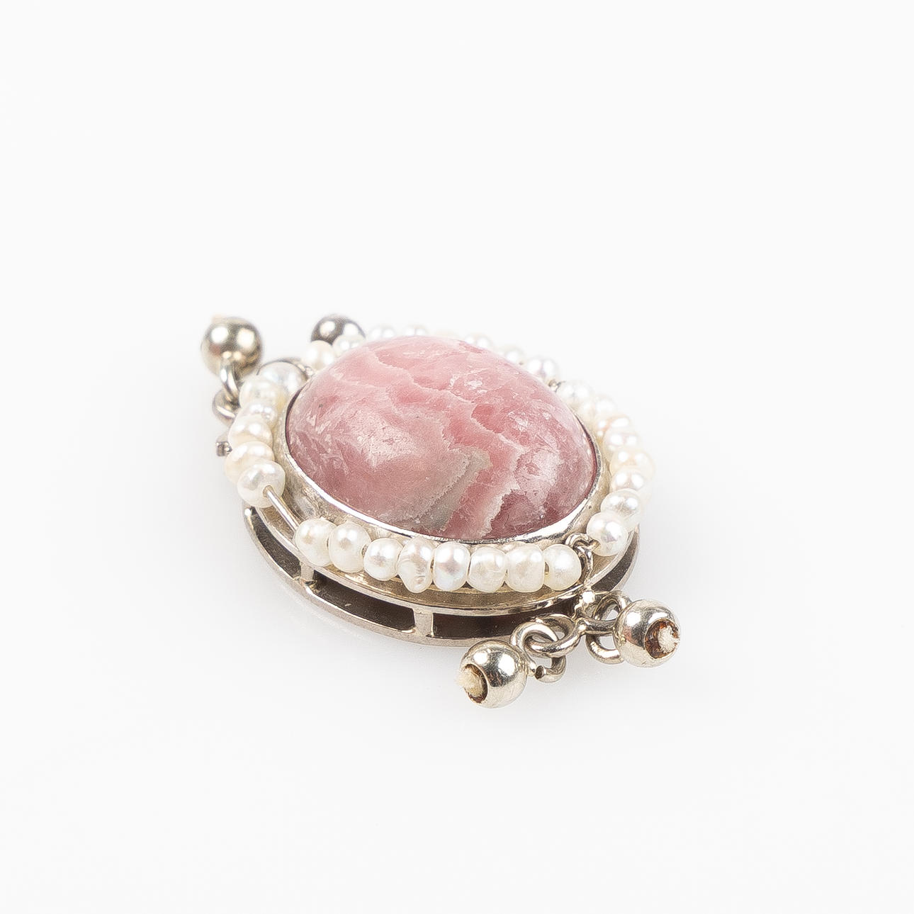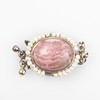 Framed with cabochon-cut rose quartz and cultured pearls strung on gold thread. L about 20 mm. Weight about 6.9 grams.
