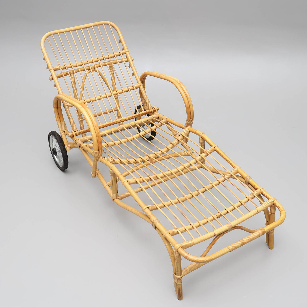 4966971. A sunbed, bamboo & rattan, 1970s/80s.