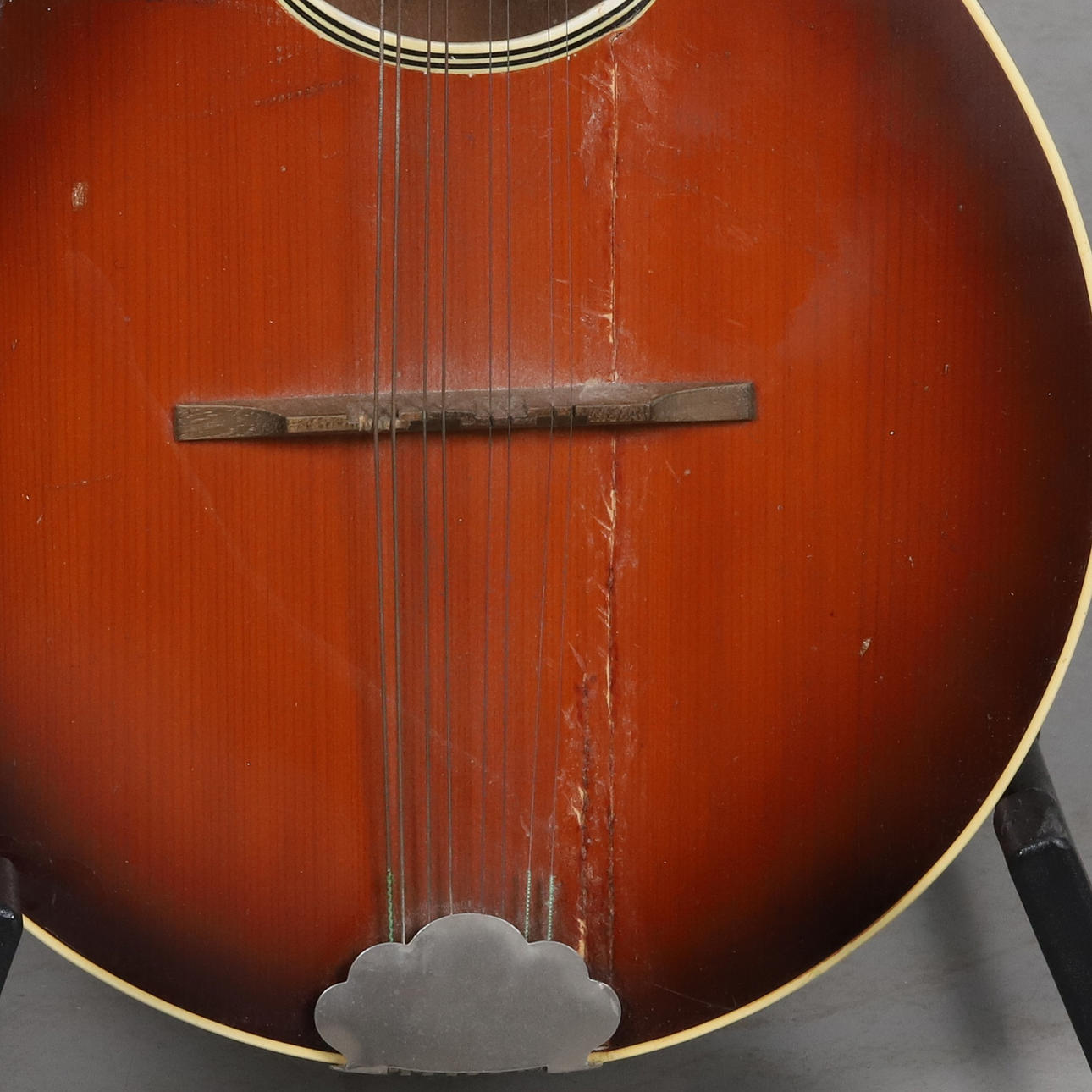 Age and utility wear. Dry cracks in the wood on the front side with attempted repair.