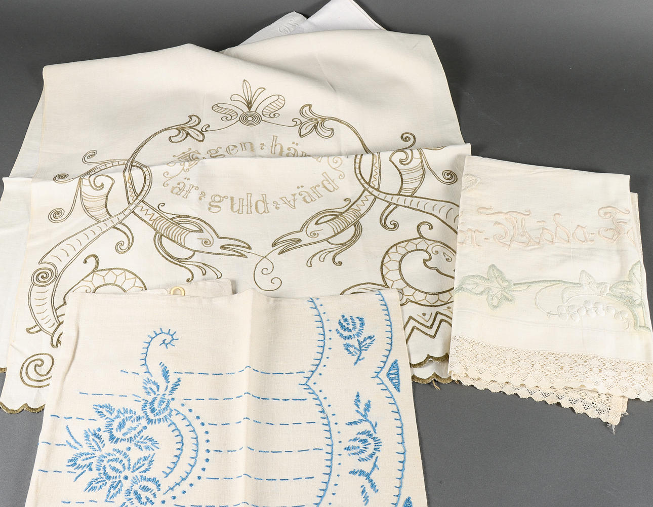 Among other things, embroidered.
