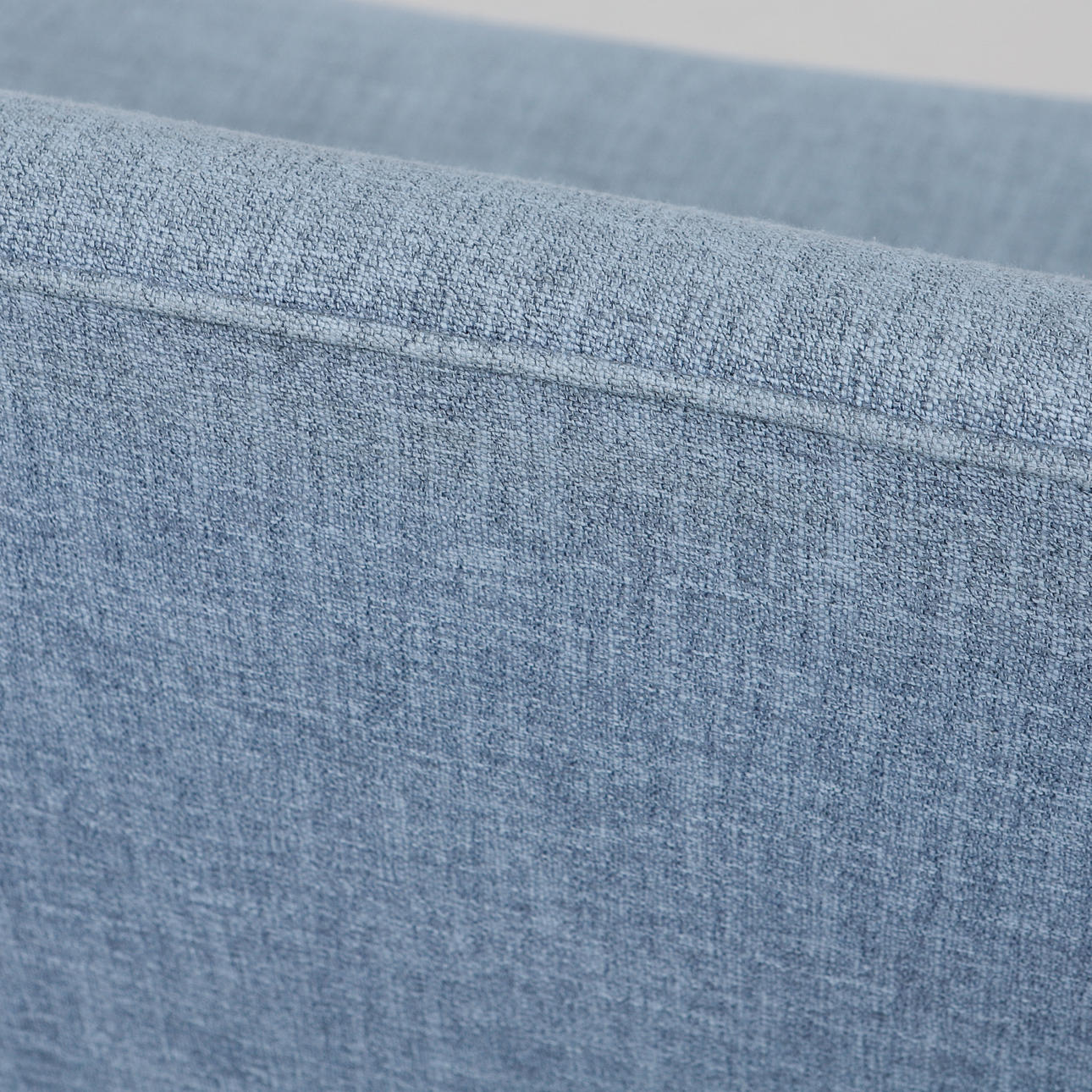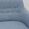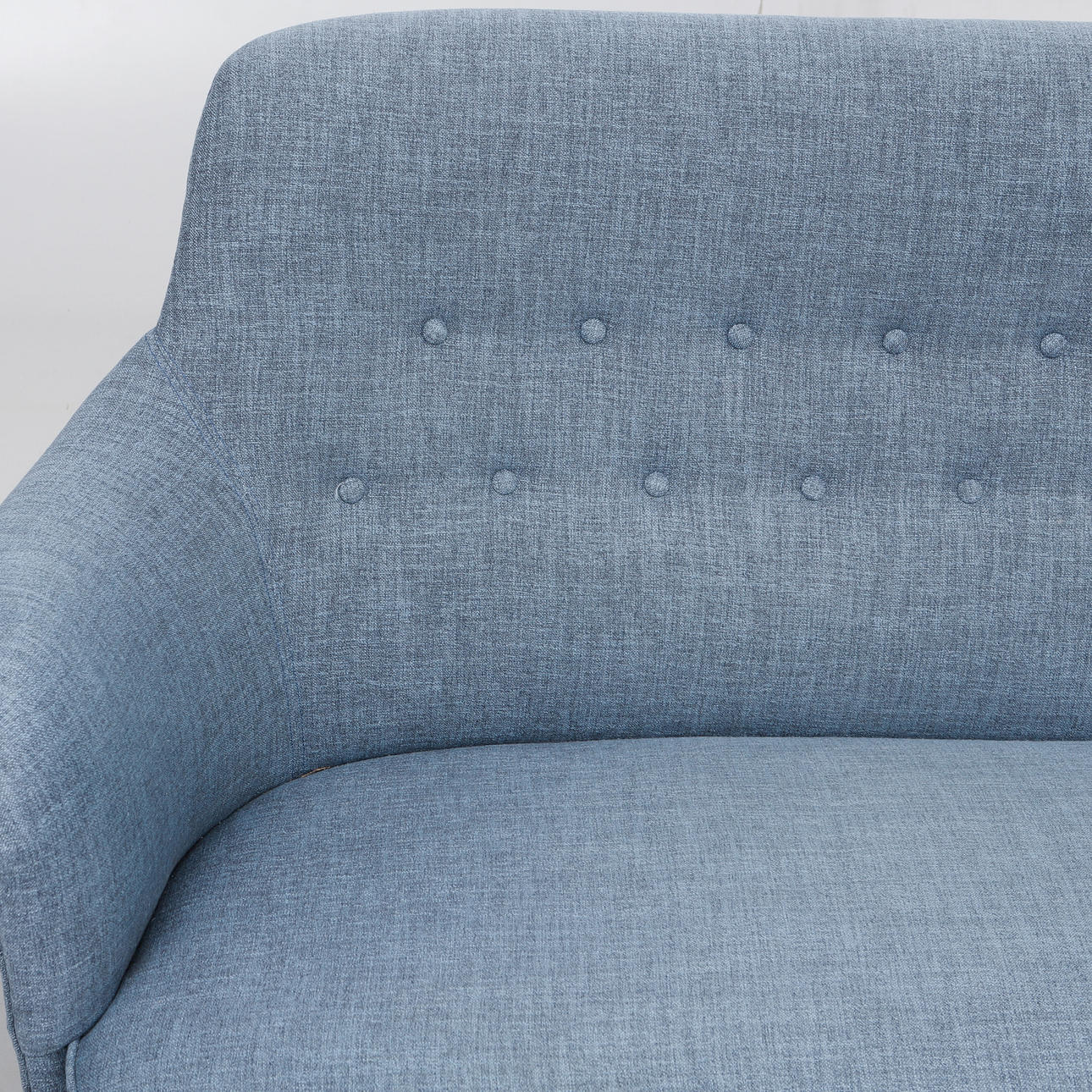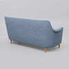 Blue textile upholstery with deep stitched back, on legs made of beech. Badge marked. Length ca 185 cm, seat height approx. 42 cm, back height approx. 86 cm.