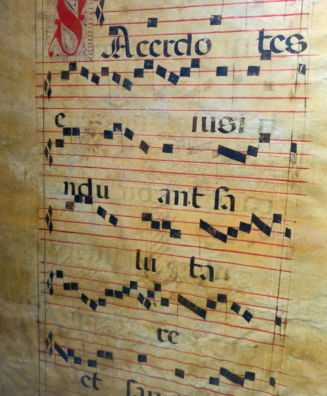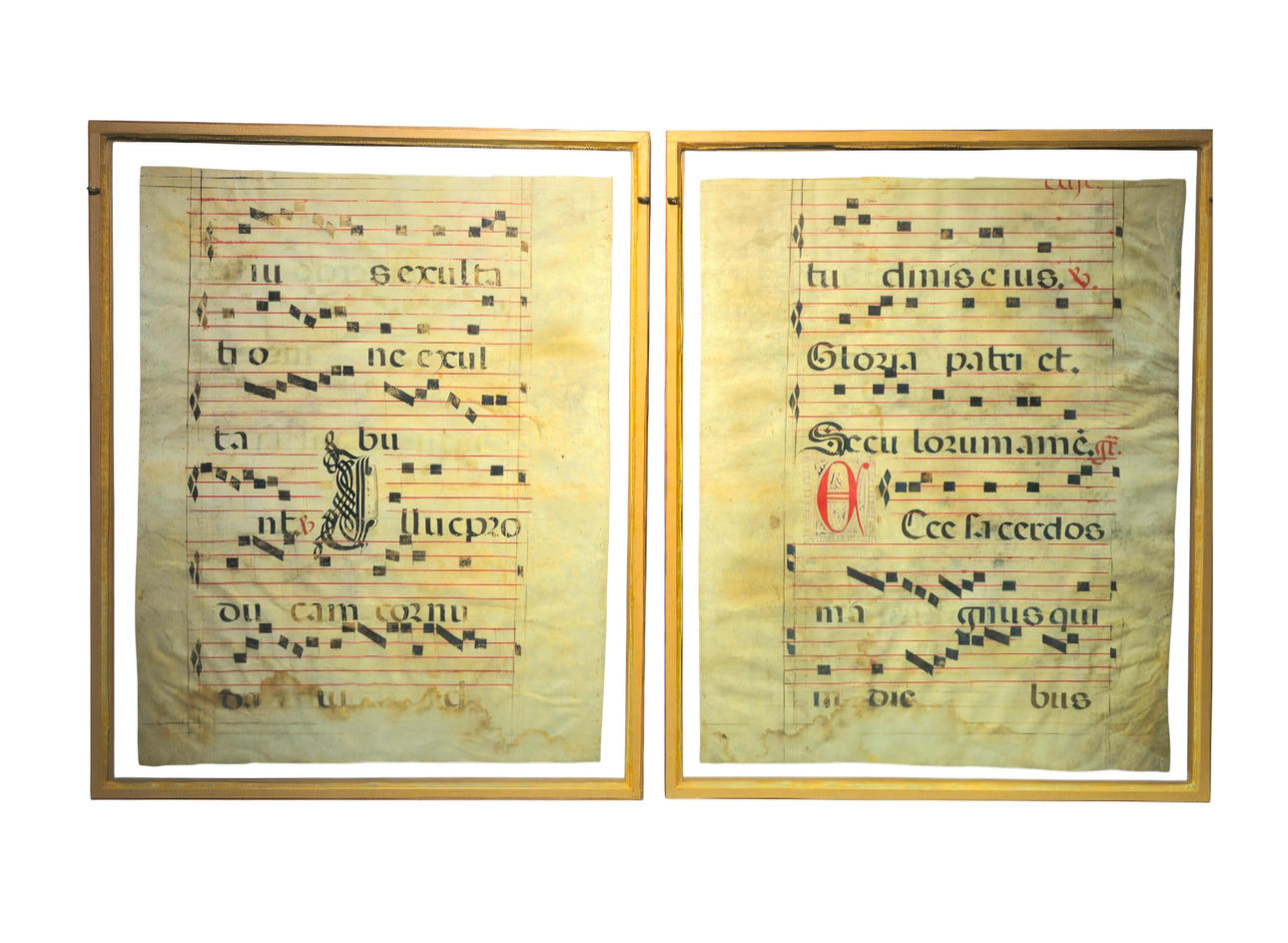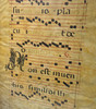 Two antique choir book leaves on parchment.