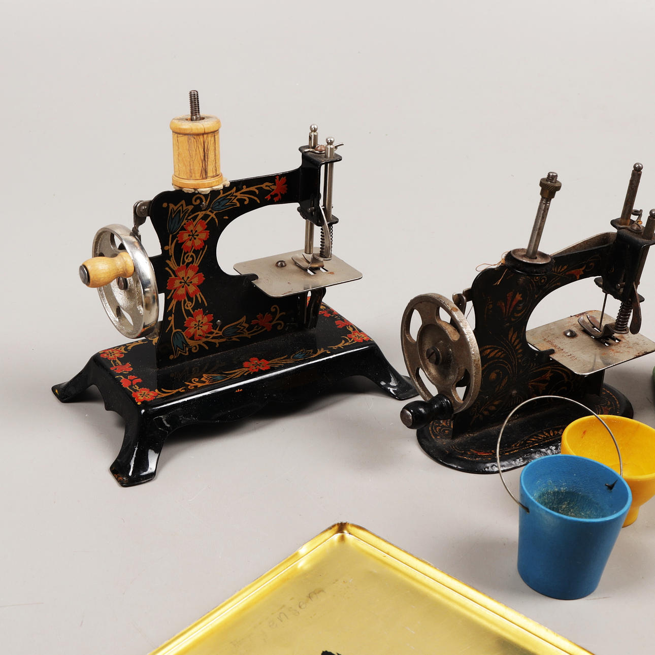 Toy sewing machines, 2 pcs, sheet metal, heights 12 cm.