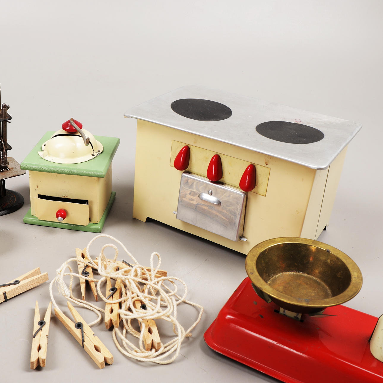 Toy stove, sheet metal, height 10 cm, width 17 cm.