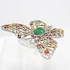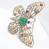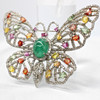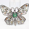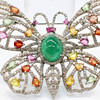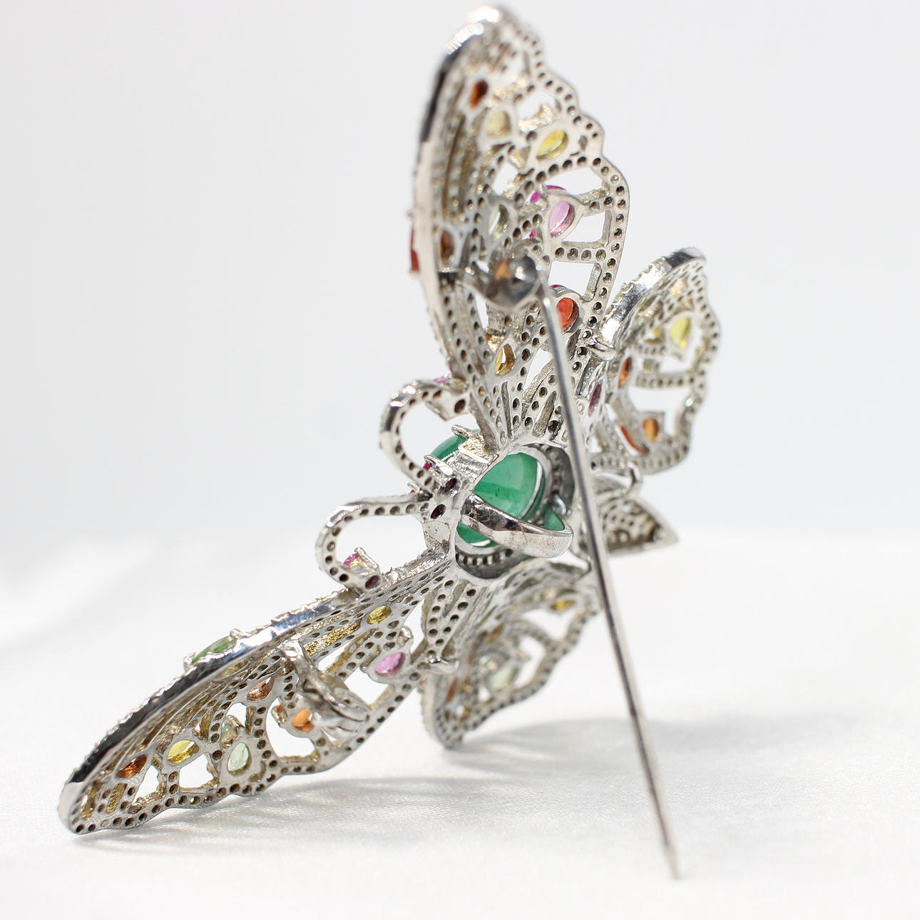 An attractive butterfly design brooch and pendant (combined) set with a natural cabochon emerald, multi coloured sapphires and diamonds set in stamped 925 silver
