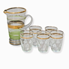 WATER JUG DECORATED WITH 5 DECORATED GLASSES.