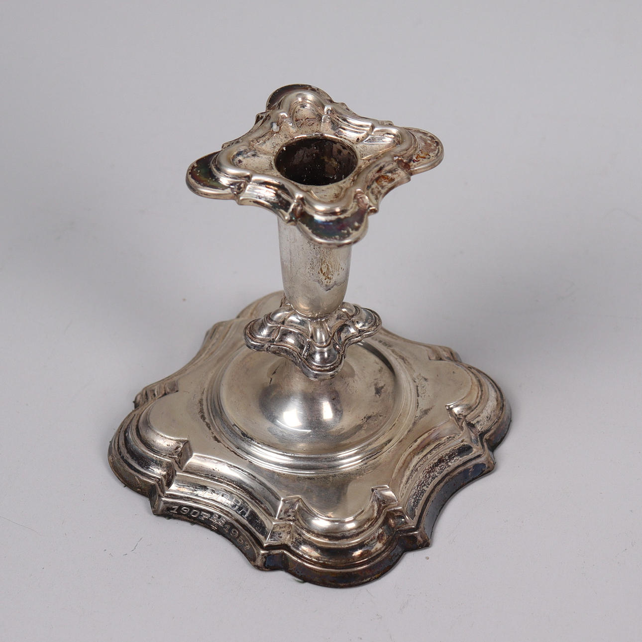 4967993. A pair of silver rococo candlesticks, mid 20th century.