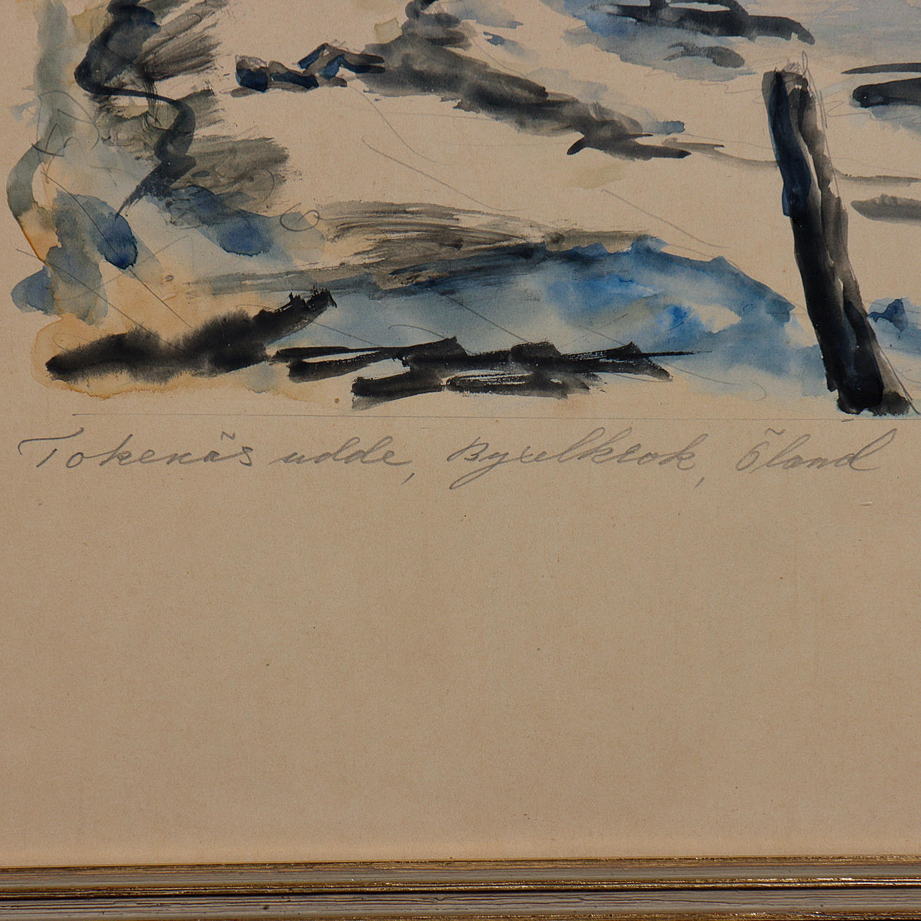 WATERCOLOUR “TOKENÄS UDDE, TROUSER HOOK ÖLAND” SIGNED, DATED 1952, GLAZED, UNIDENTIFIED ARTIST.