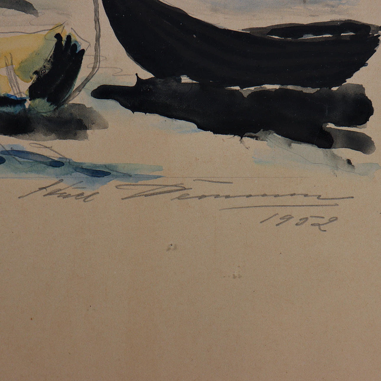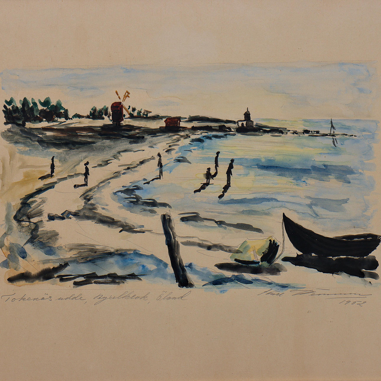 4968262. WATERCOLOUR “TOKENÄS UDDE, TROUSER HOOK ÖLAND” SIGNED, DATED 1952, GLAZED, UNIDENTIFIED ARTIST.