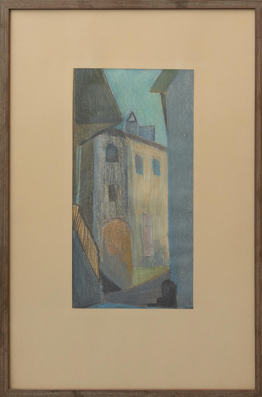 4968330. OIDENTIFIERAD KONSTNÄR. House facades, pastel, indistinctly signed.