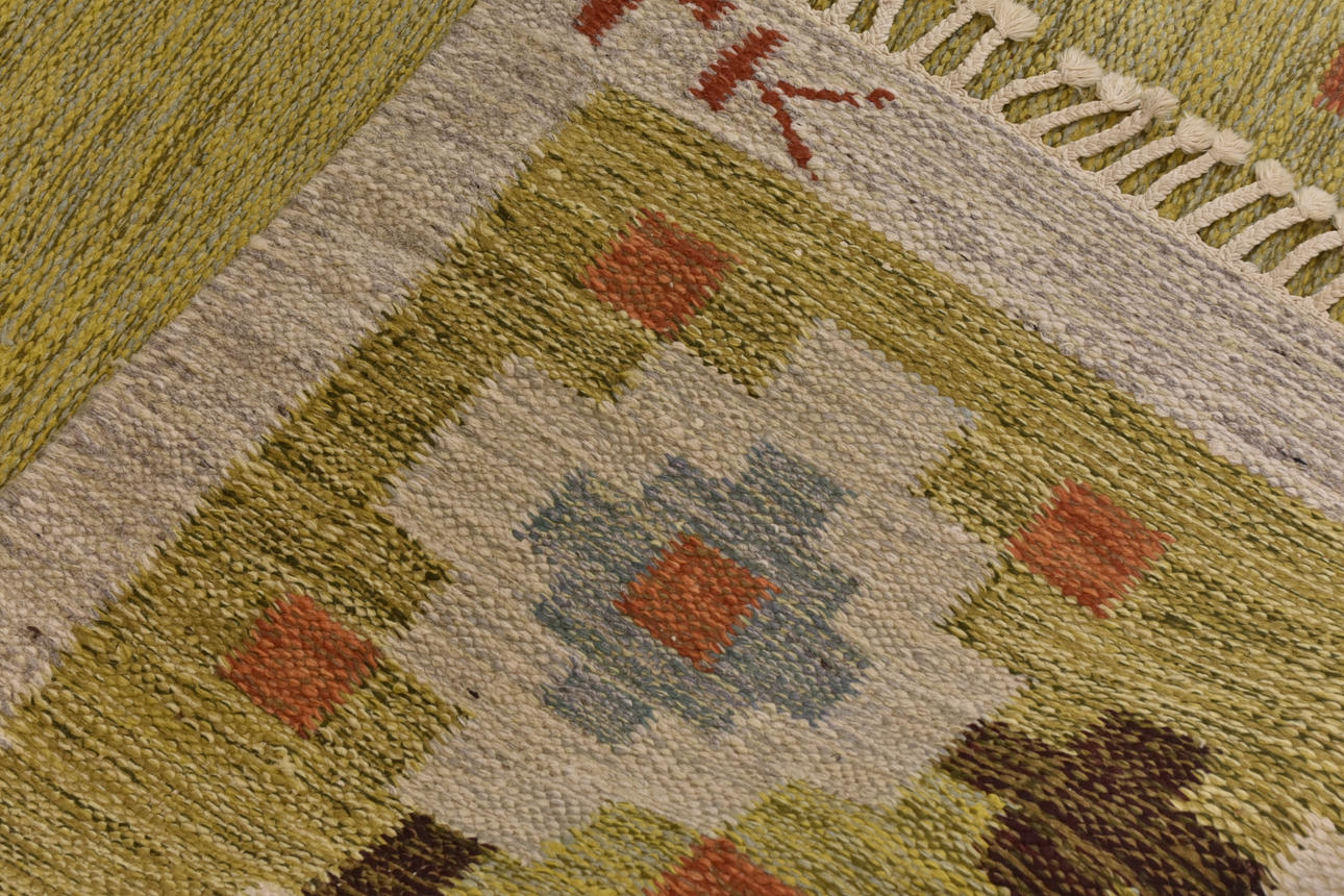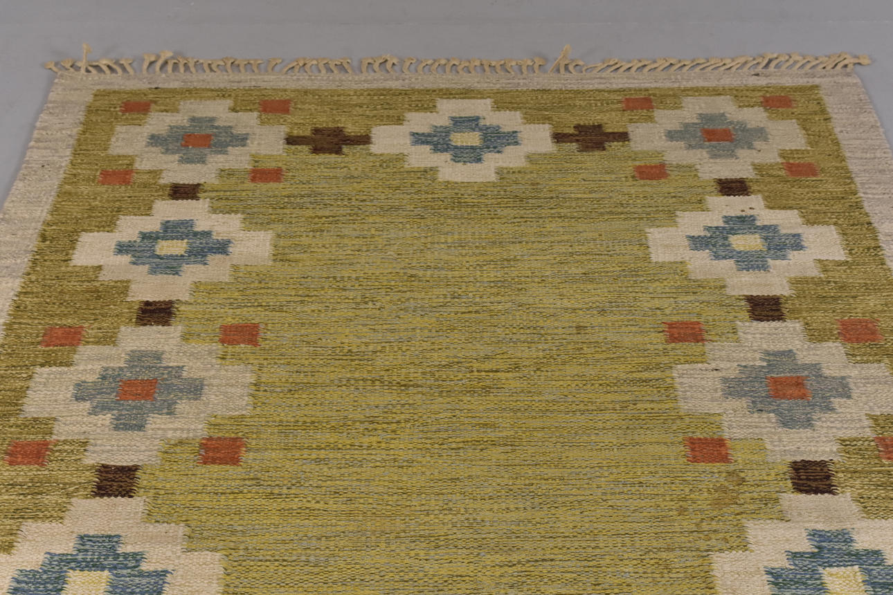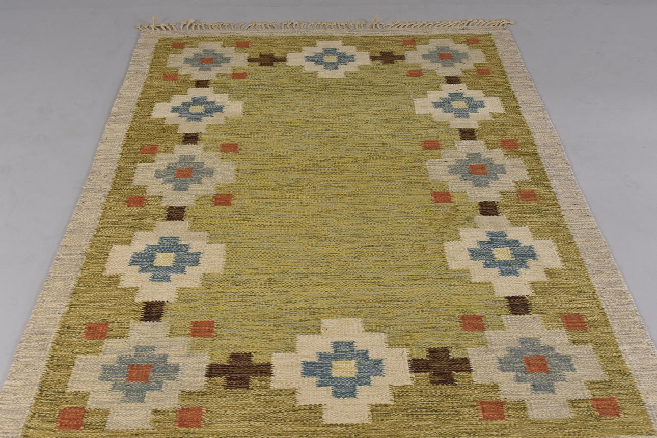 CARPET, wicker, signed LK.