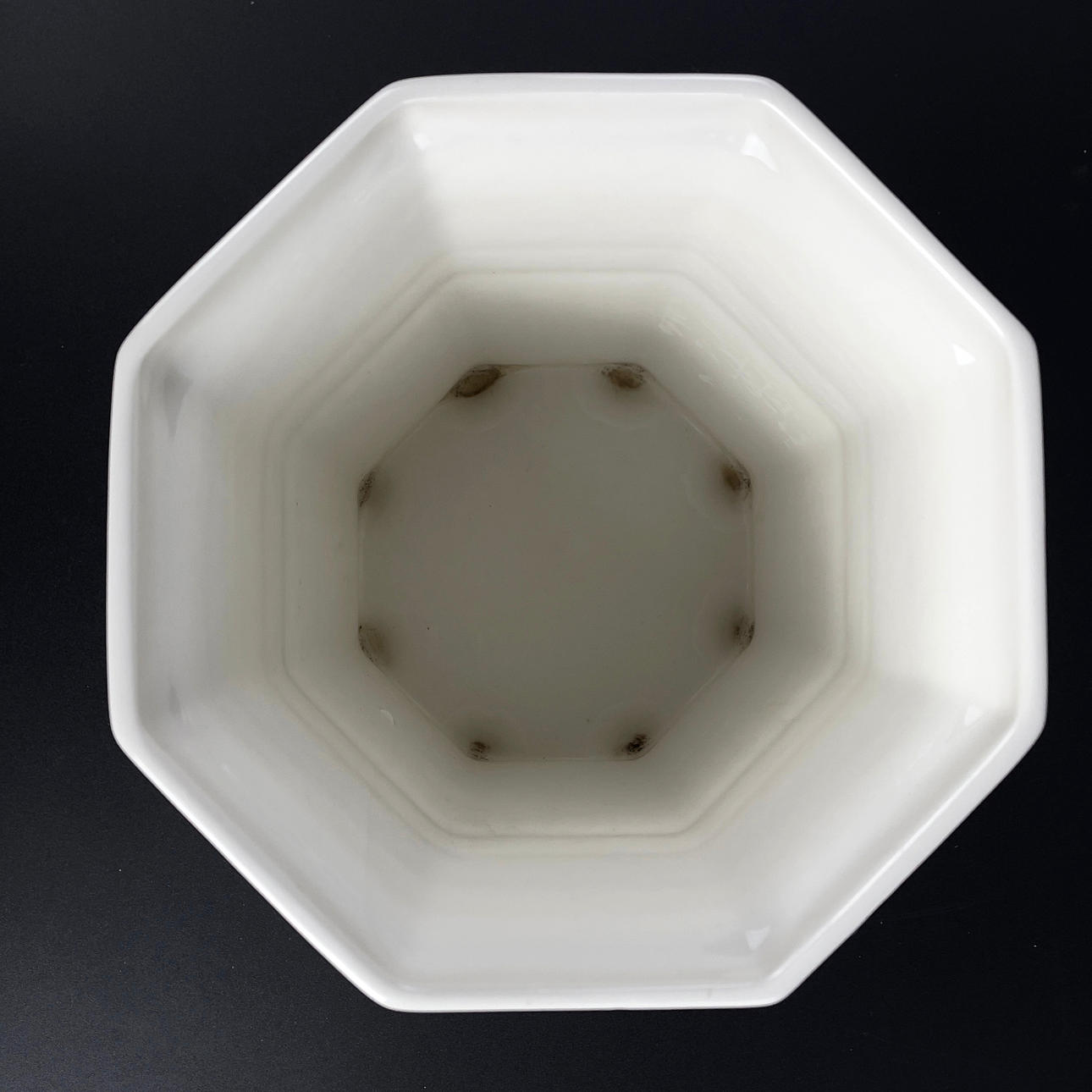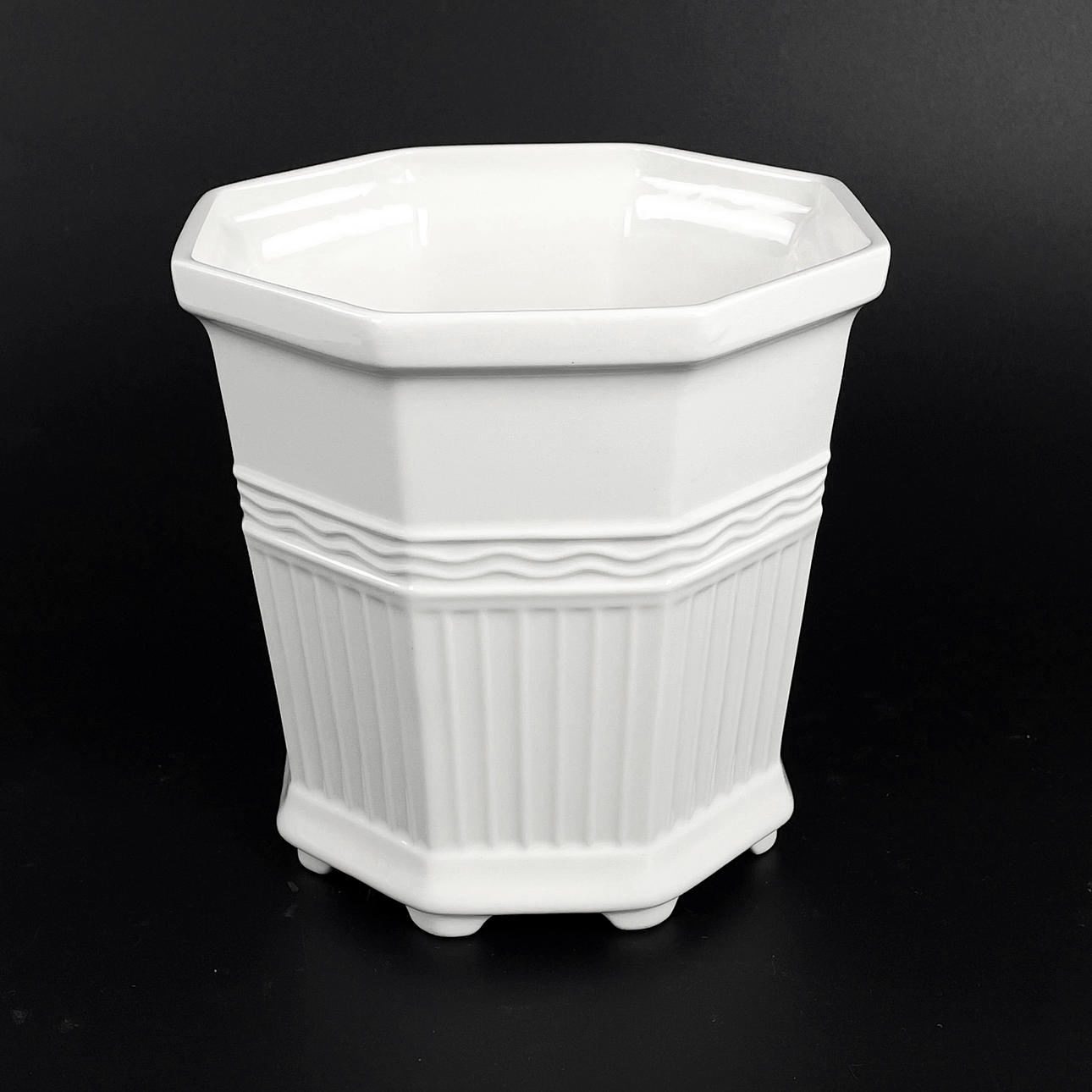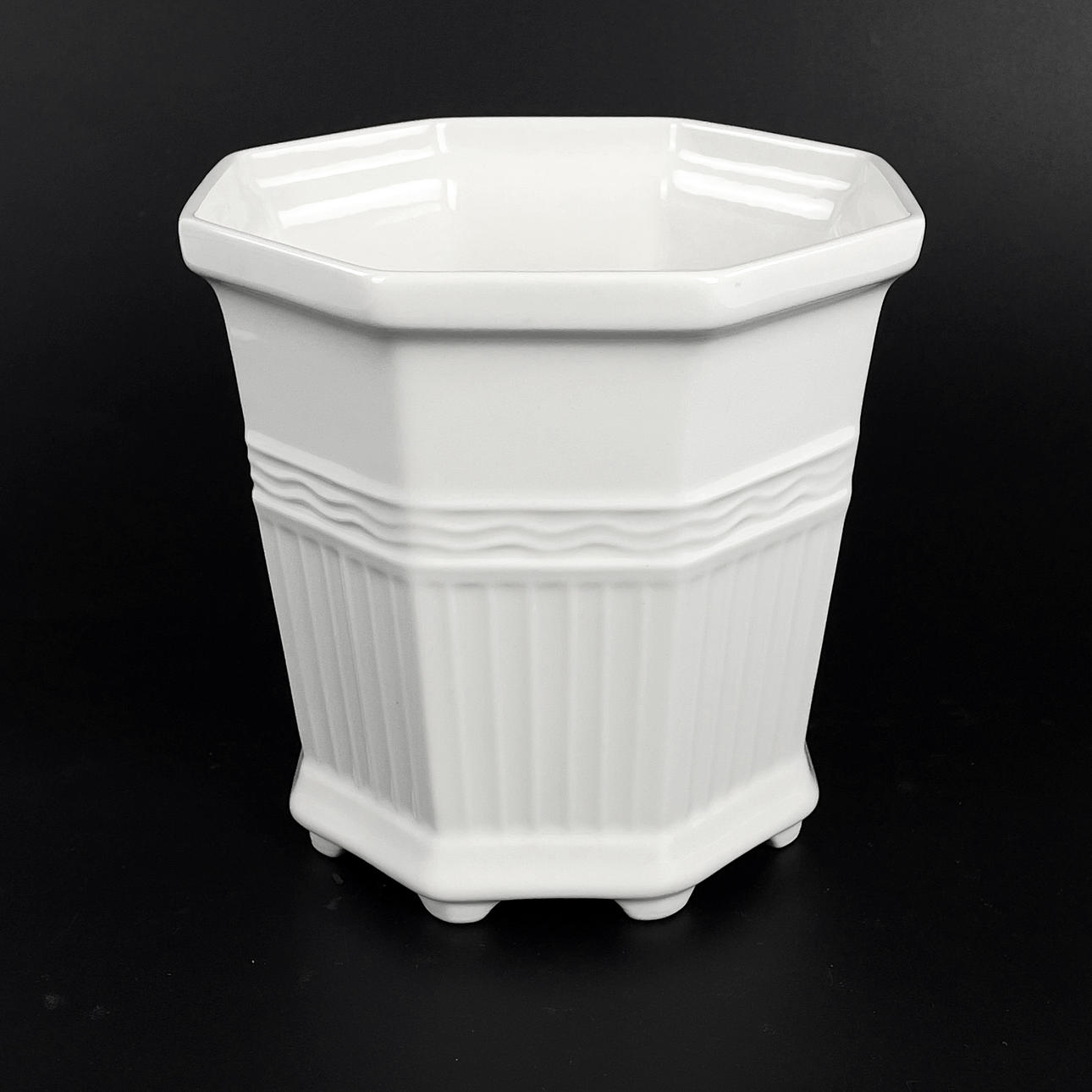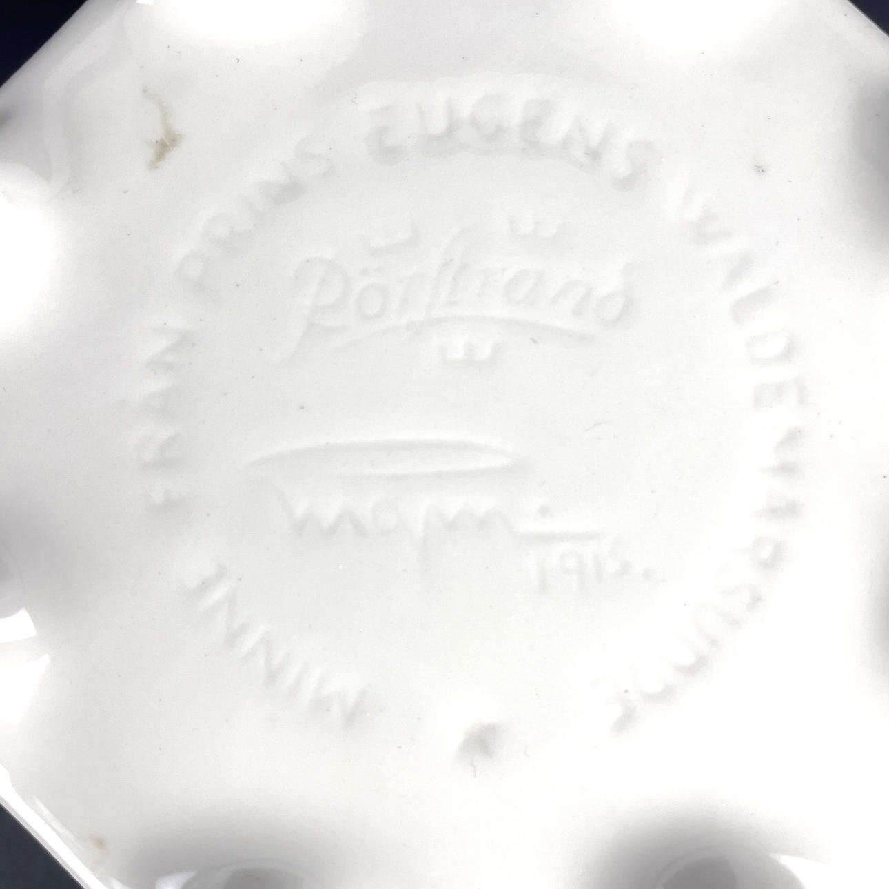 White glazed porcelain. Deep stamped at the bottom.
