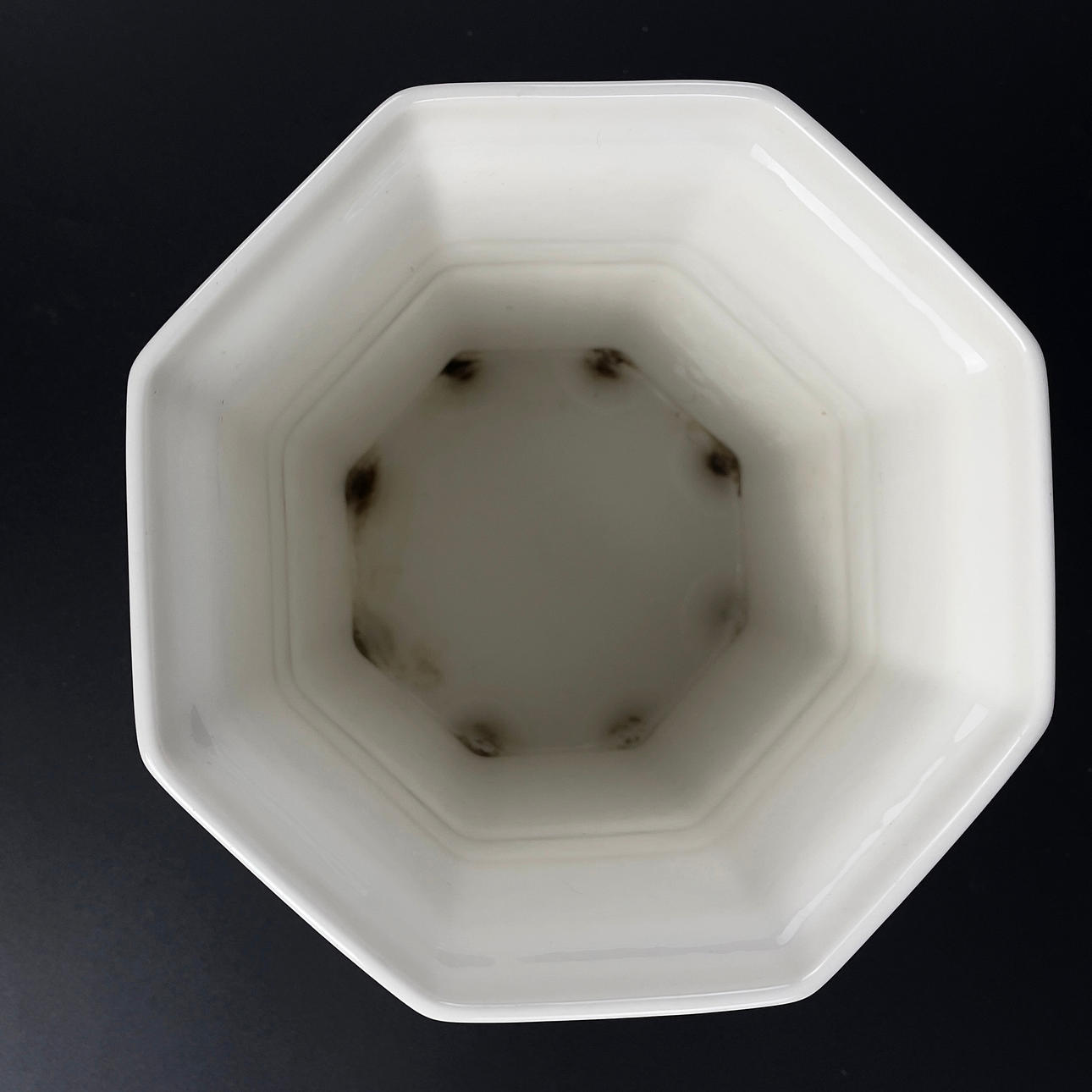 Minor wear and tear. Surface dirt/stains. Partly small glaze mists/glaze defects on one outer lining.