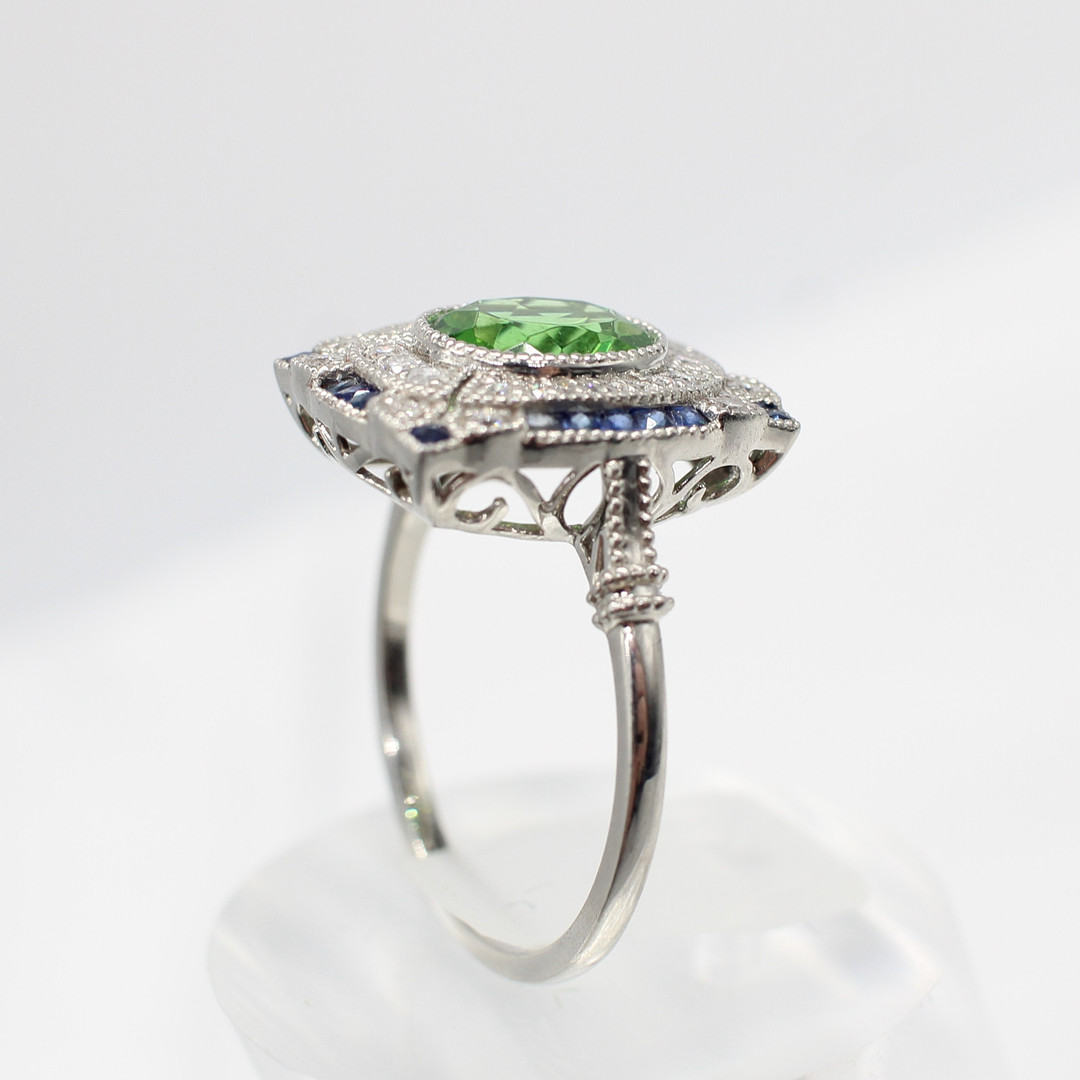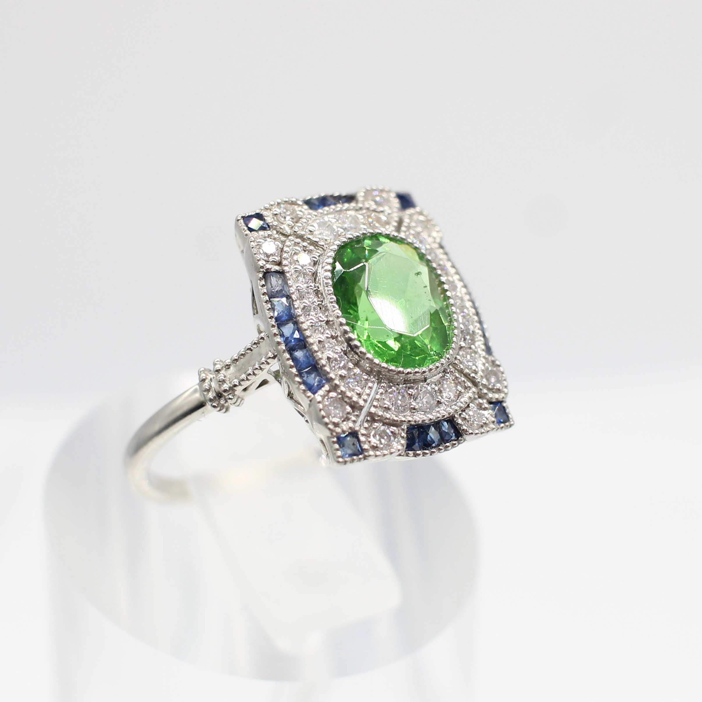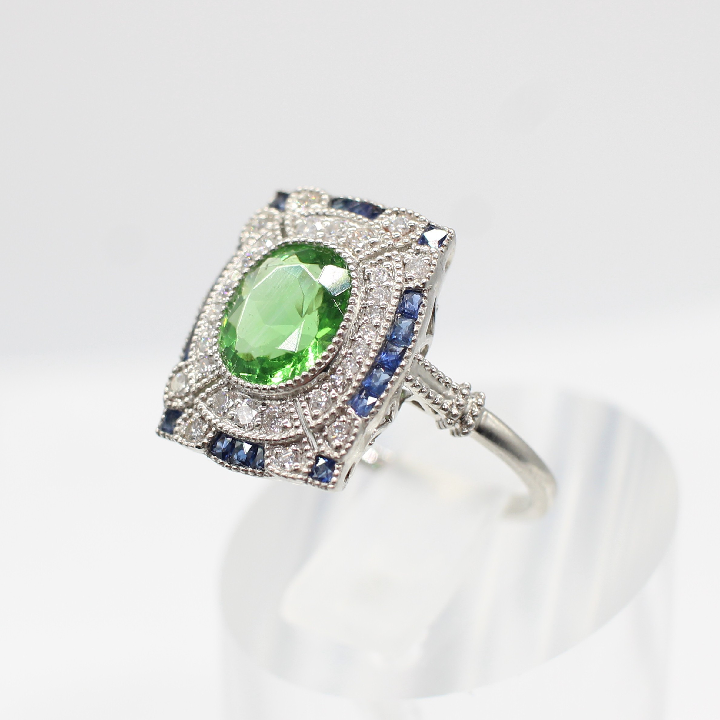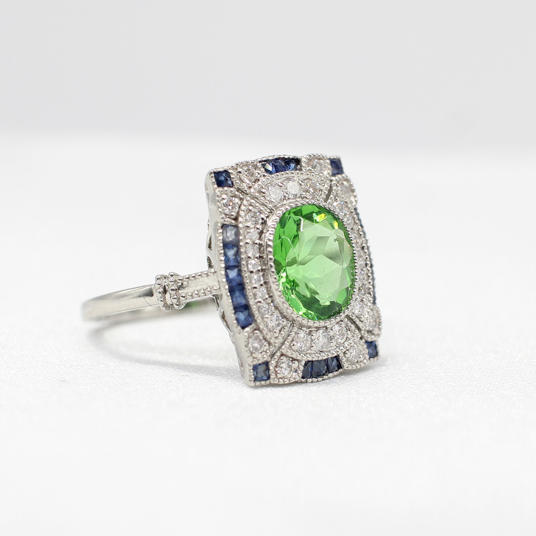 4969076. PERIDOT, SAPPHIRE & DIAMOND RING.