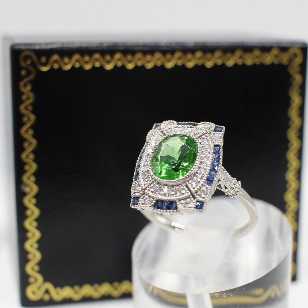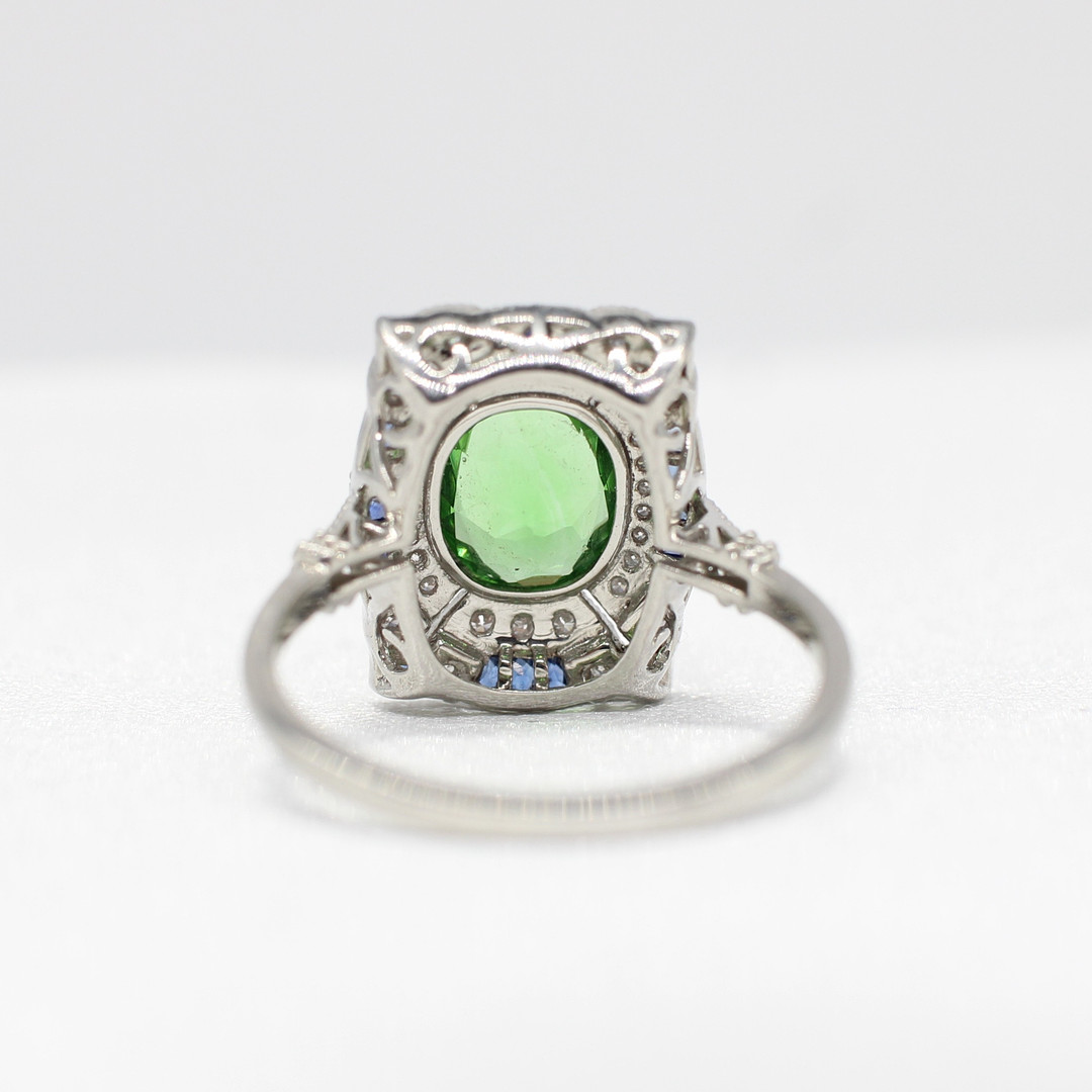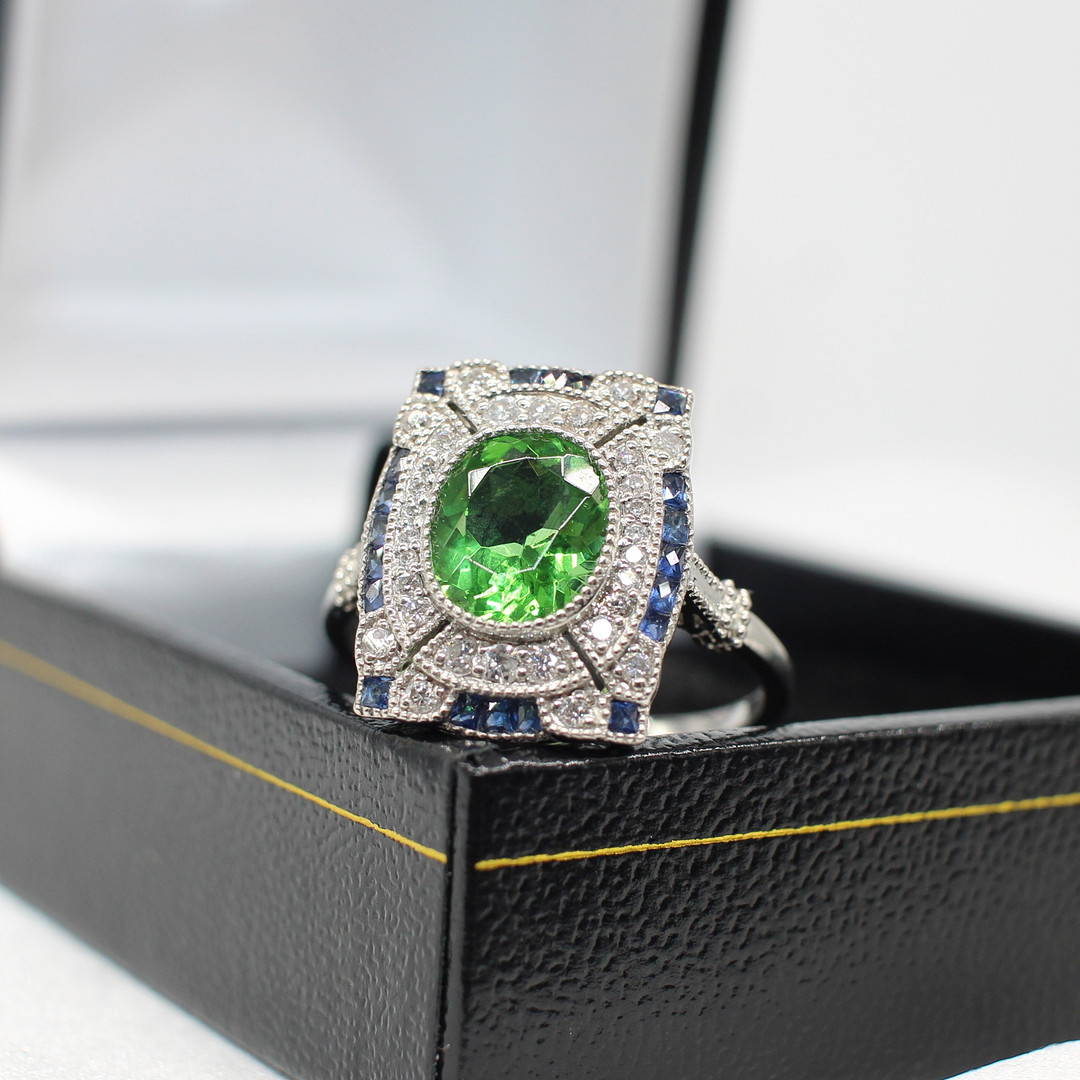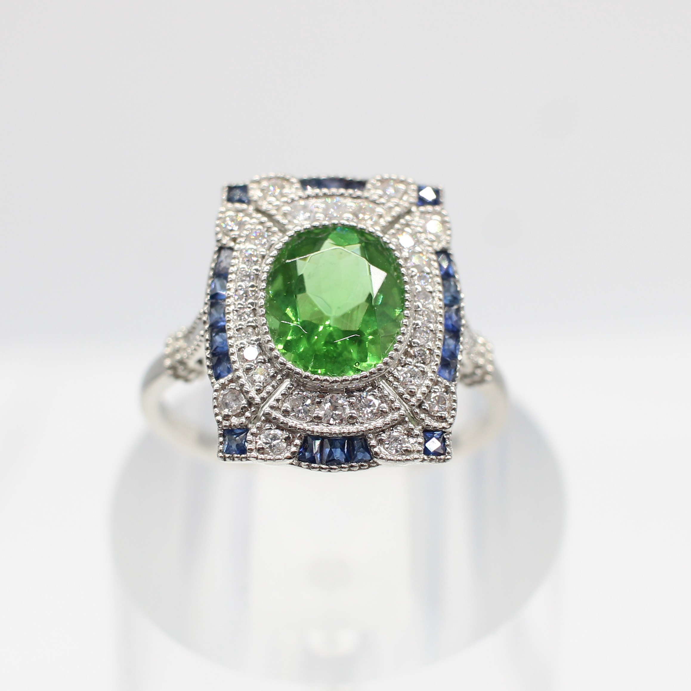 4969076. PERIDOT, SAPPHIRE & DIAMOND RING.
