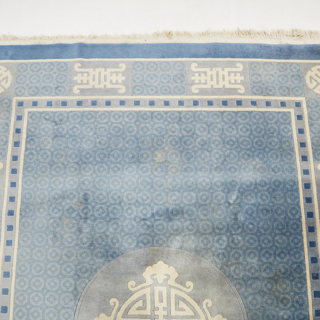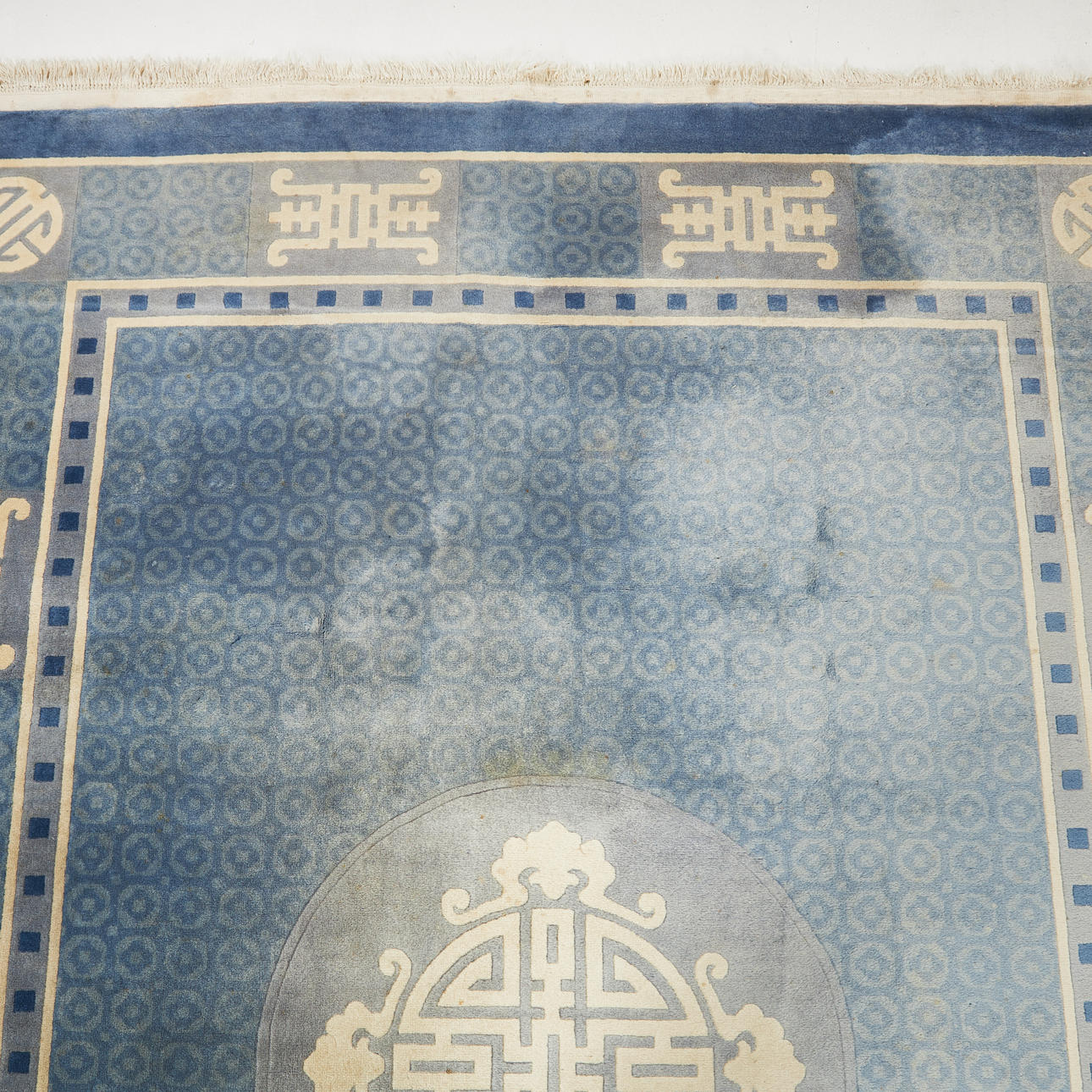 Use and age related wear, partially bleached, partial stains, freshly washed.