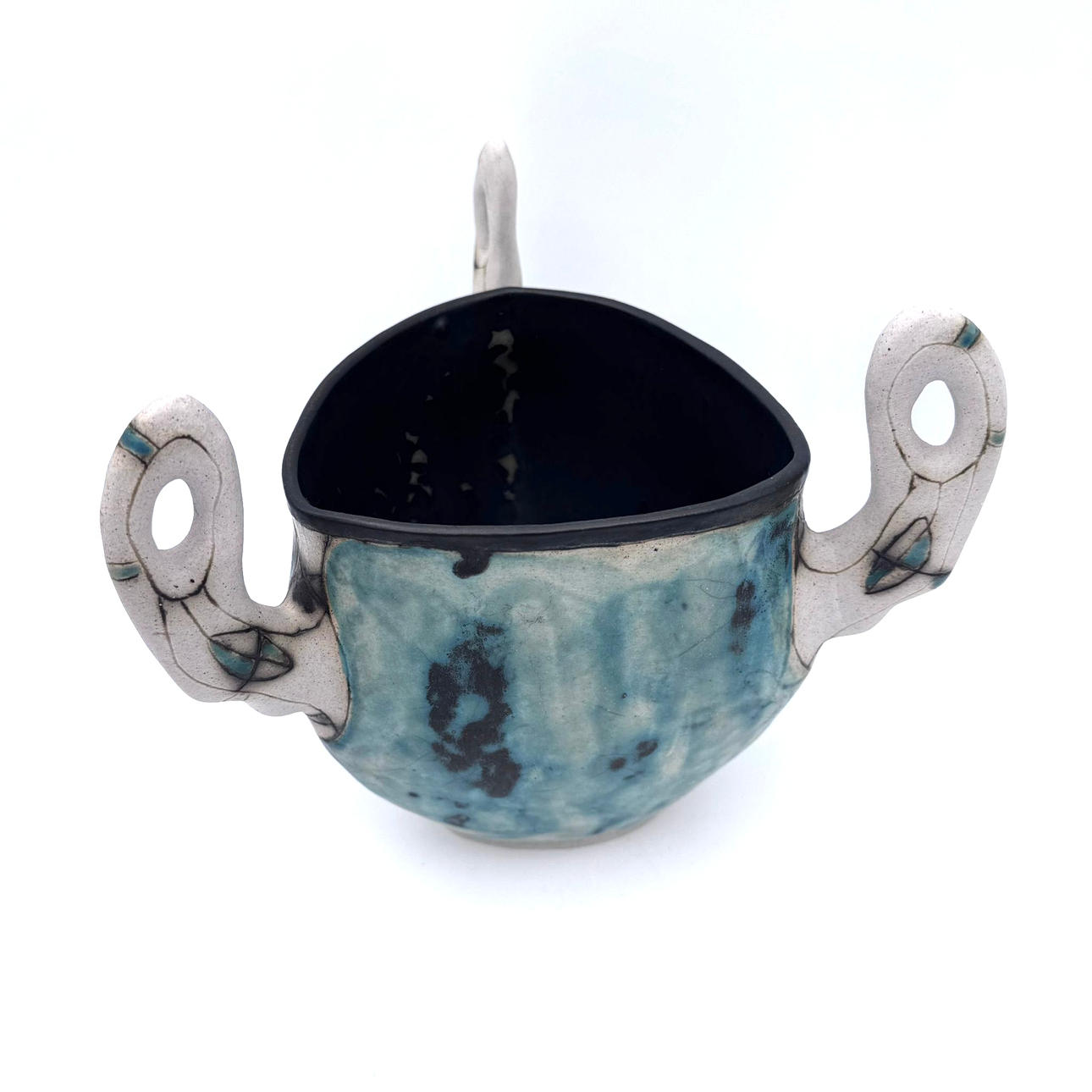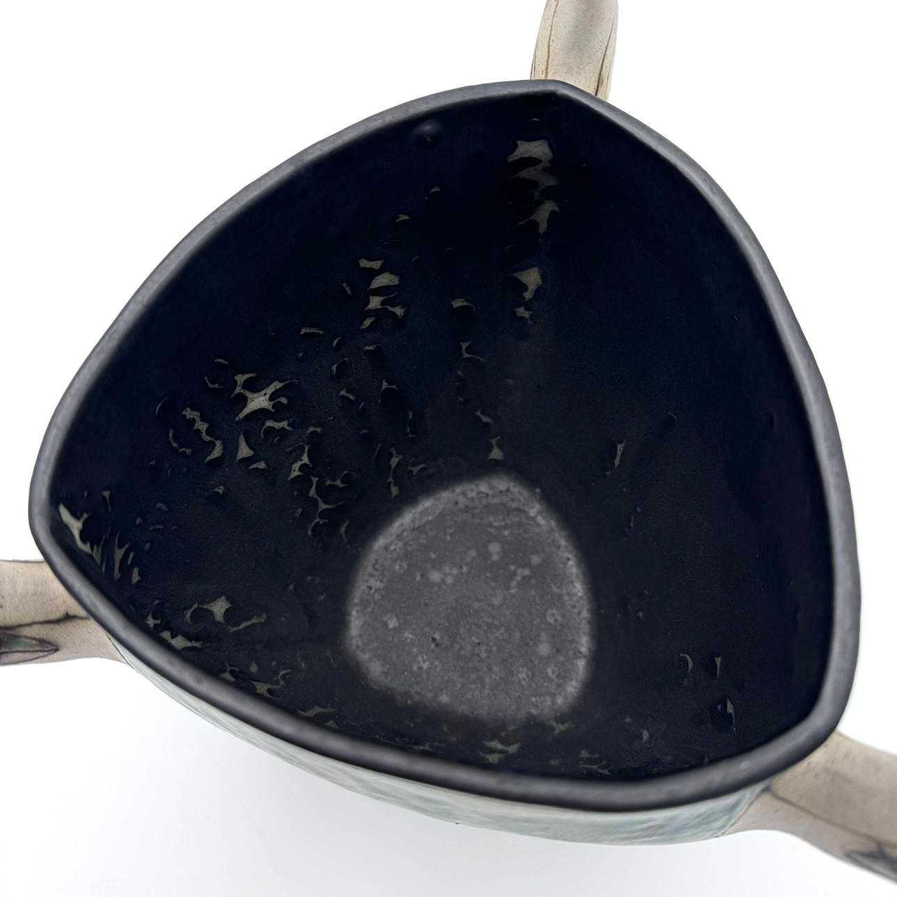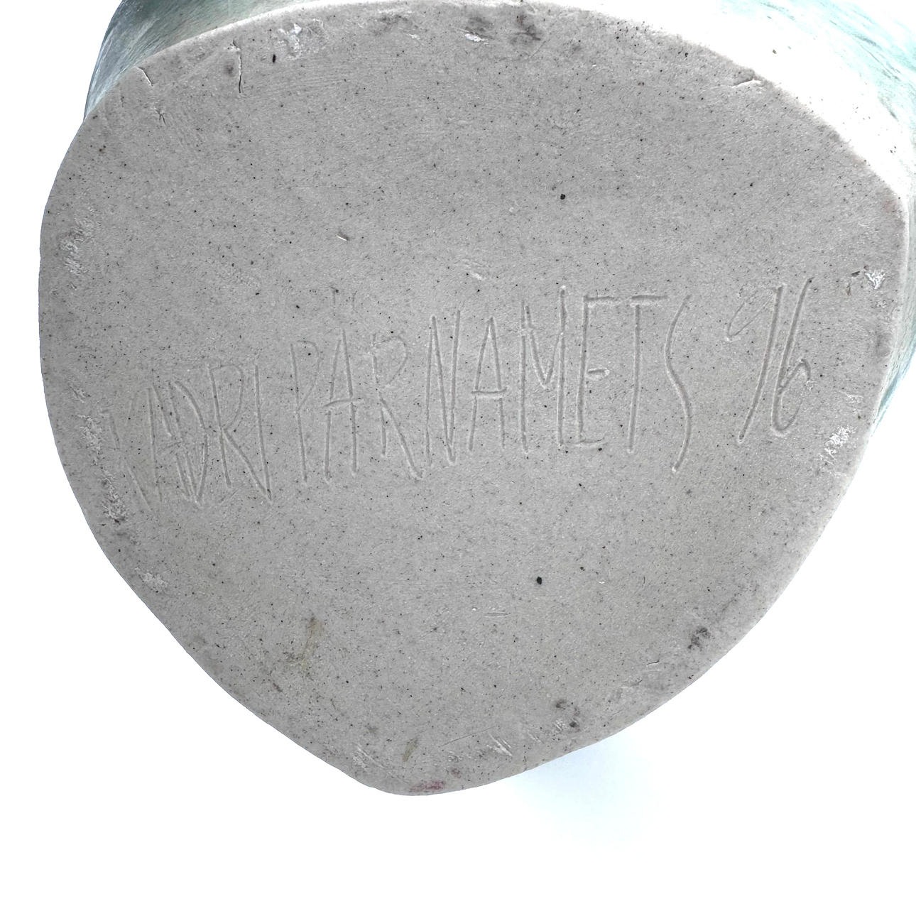 4969231. KADRI PÄRNAMETS (ESTLAND, 1968- ). Vase, stoneware, partly glazed, triangular conical shape with upturned openwork hangers, signed and dated Kadri Pärnamets 96.