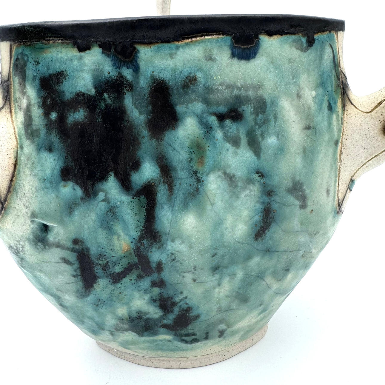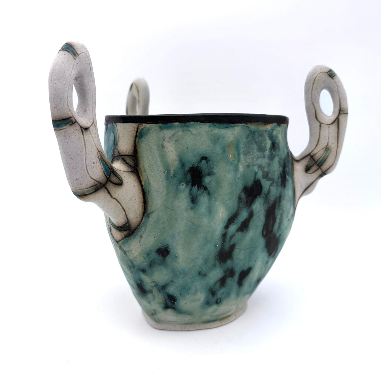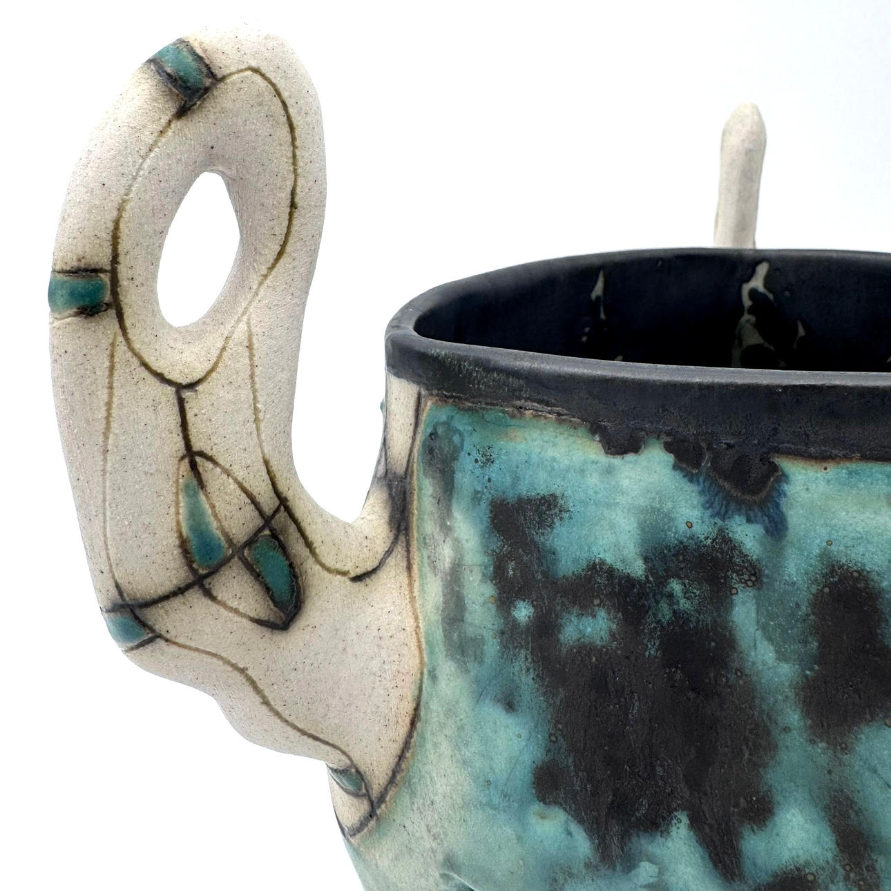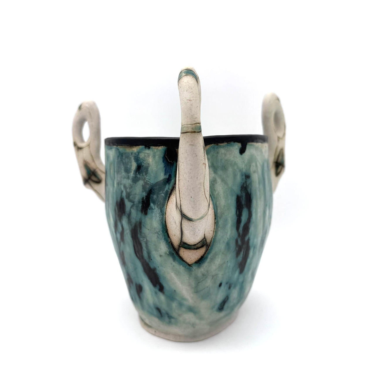 4969231. KADRI PÄRNAMETS (ESTLAND, 1968- ). Vase, stoneware, partly glazed, triangular conical shape with upturned openwork hangers, signed and dated Kadri Pärnamets 96.