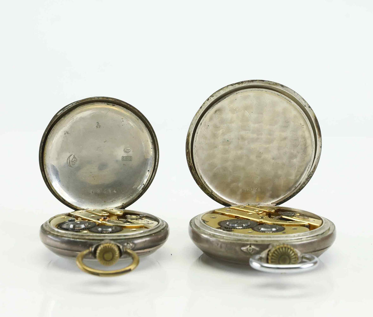 4969434. POCKET WATCH, 2 pcs, silver, 56 mm, 48 mm.