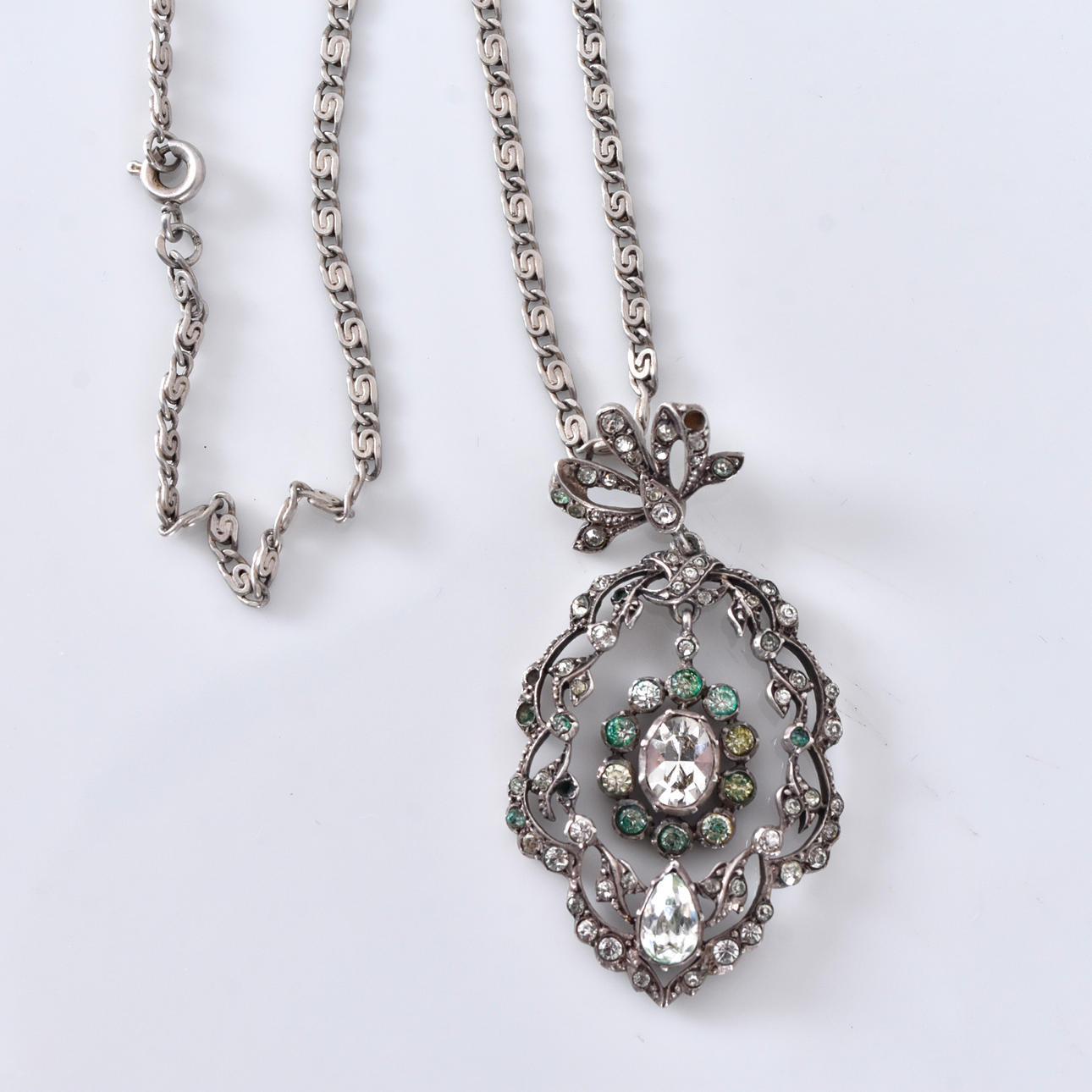 5 x 3 cm, chain l 45 cm, total weight 17 grams.