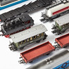 Consisting of; starter sets 0963 and 2920, 2 passenger carriages brand 140 years, 4074, 4514, 4663, 8 pcs., 4640, 4003, 4650. 84670, 4501, 4423, 4627, crane 4611.
