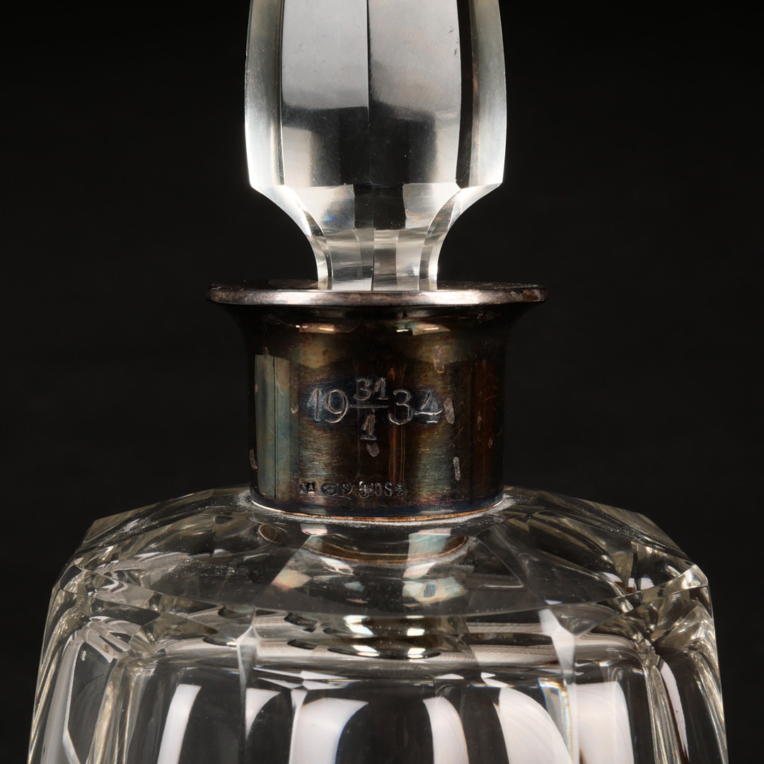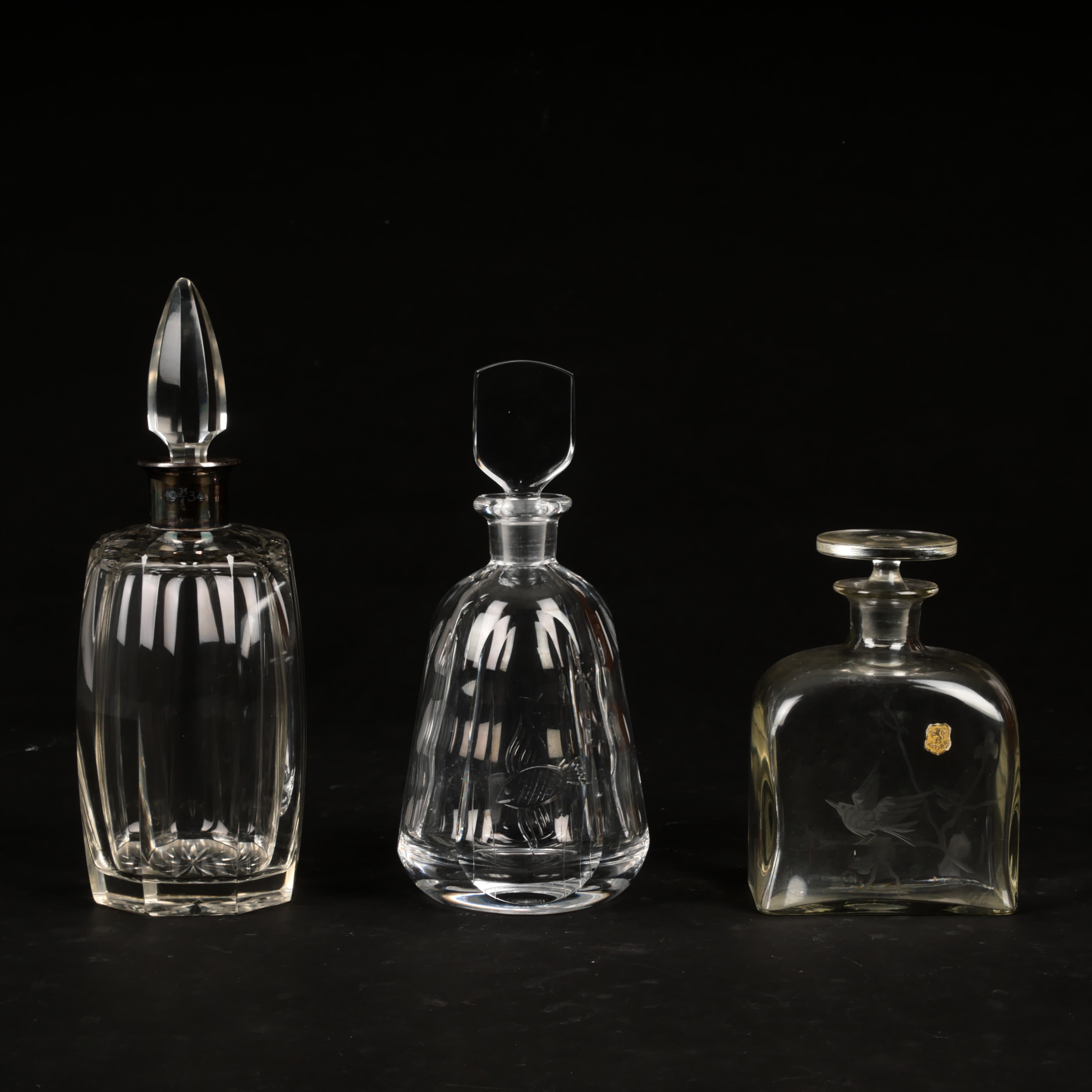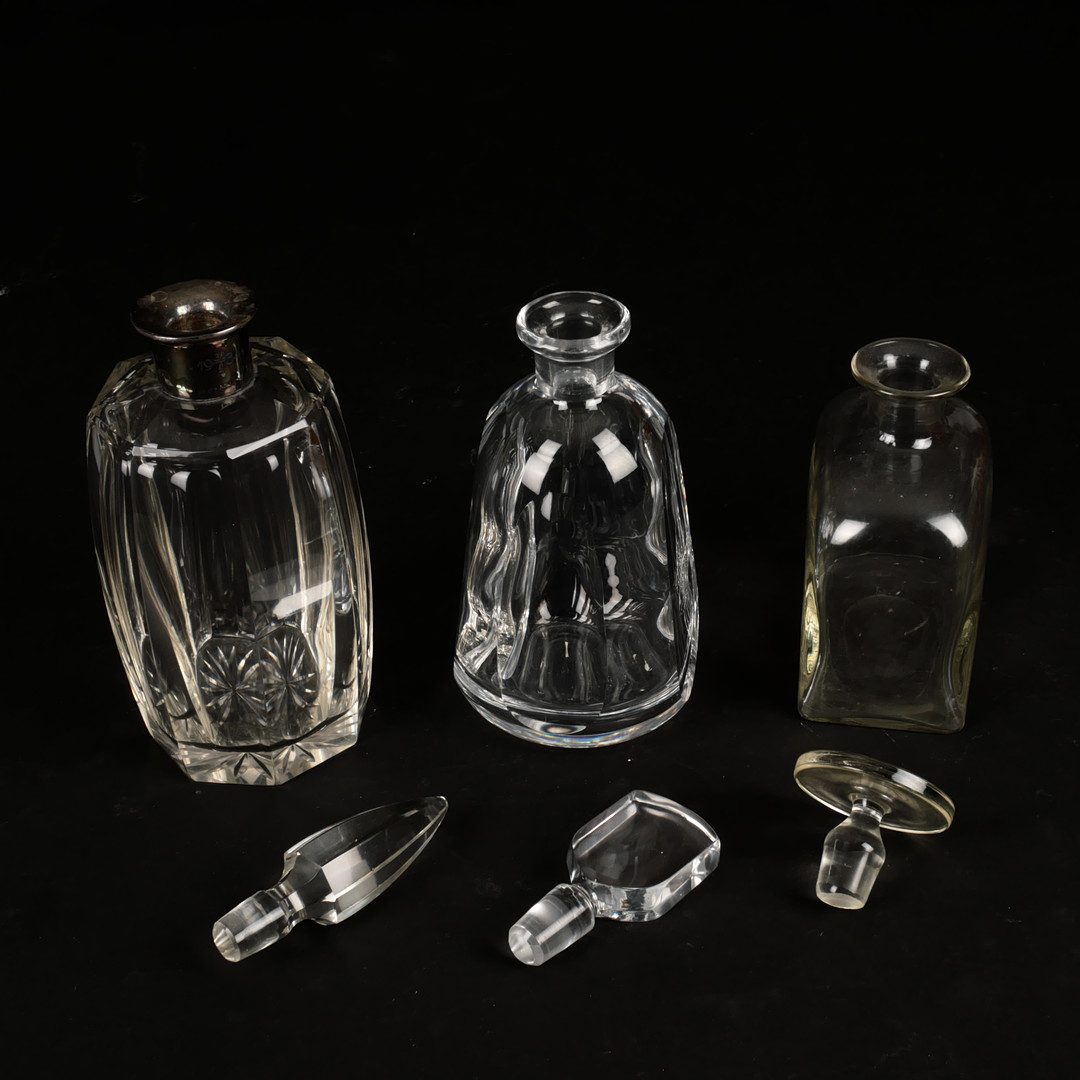 4970107. DECANTERS, 3 pcs, glass, blue with silver.