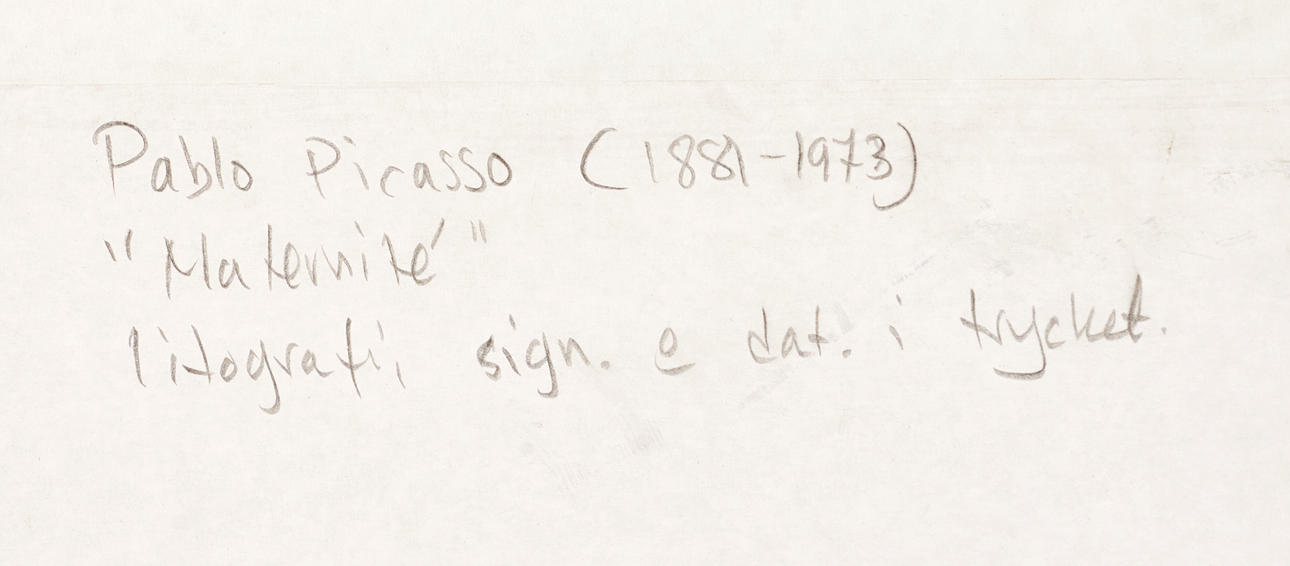 4970239. AFTER PABLO PICASSO. “Maternité” (1909), lithographic sheet, signed ocn dated in print.