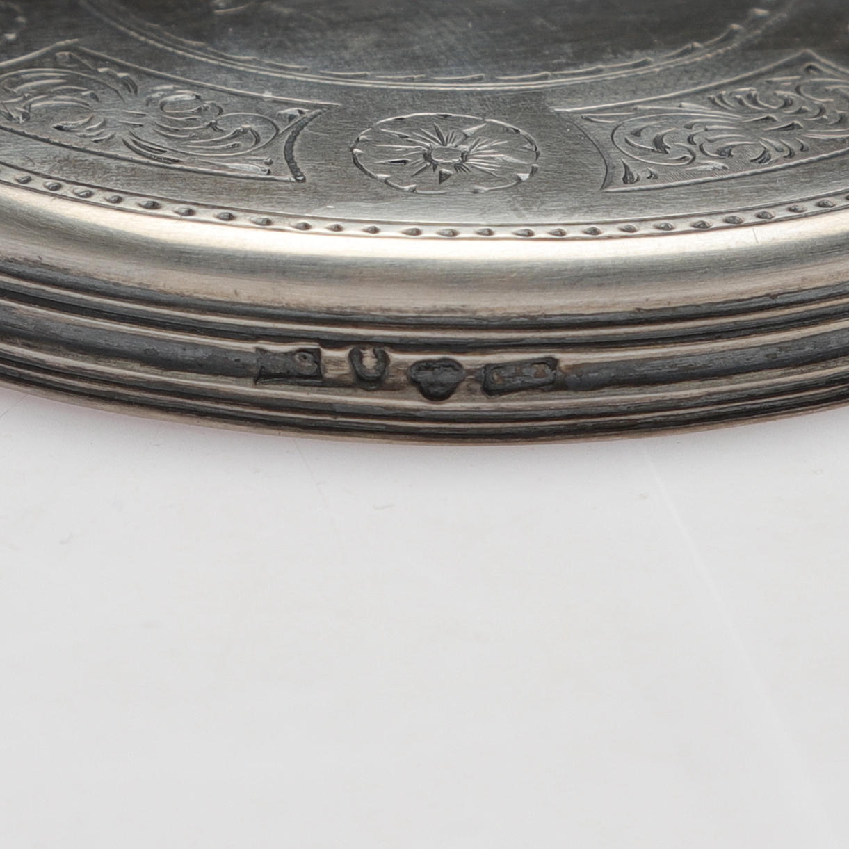 Use and age-related wear, sulphide, indistinct stamps, scratches.