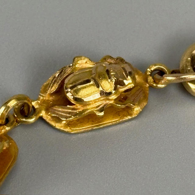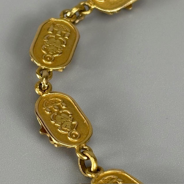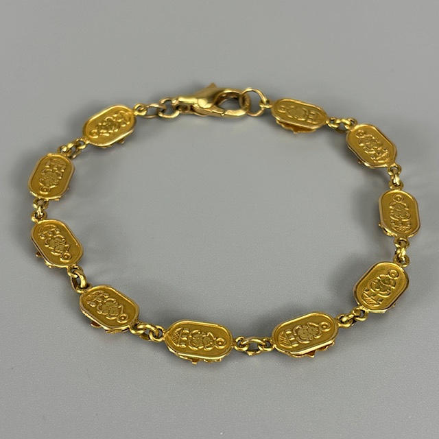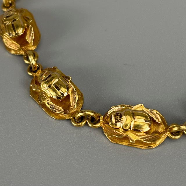 Gold metal bracelet, the links designed as Egyptian scarabs, approximately 11.5g.