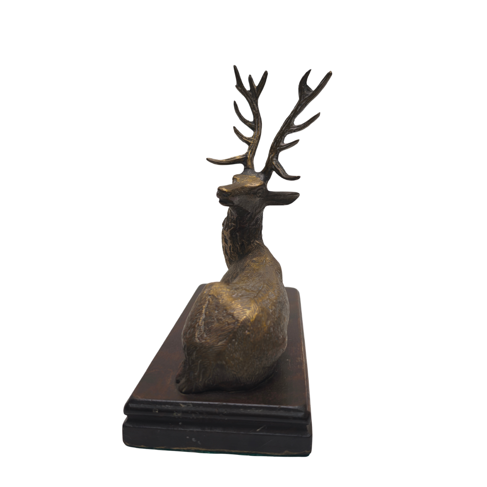 4970410. BRONZE DEER STATUE ON WOODEN BASE.